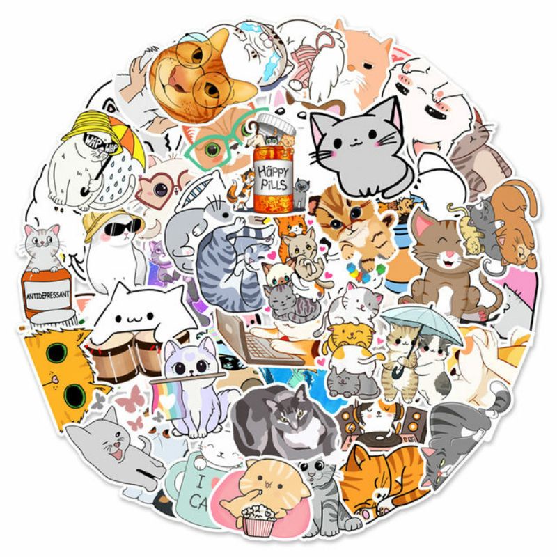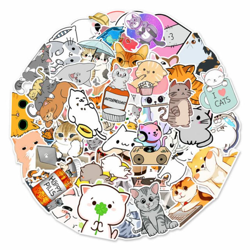 Stiker Kucing Pack Style 260292- Stiker Aesthetic Keren Imut Laptop, Aksesoris Hp, Anti Air, Motif, Helm, Tumbler, Koper, Kulkas