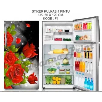 Stiker Kulkas 1 Pintu Motif Bunga Mawar Merah