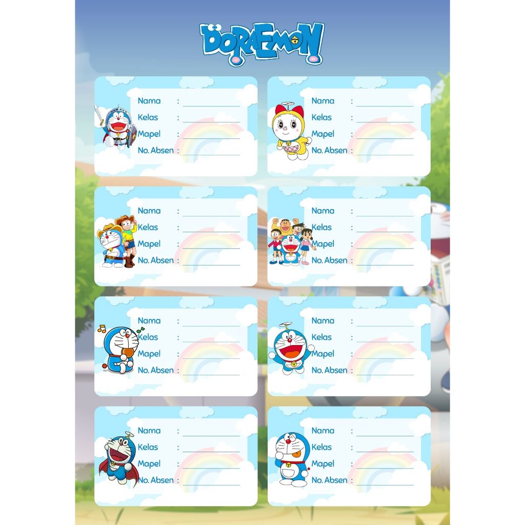 Stiker / Label Buku Pelajaran Anak (Nama Kelas Mapel) Doraemon
