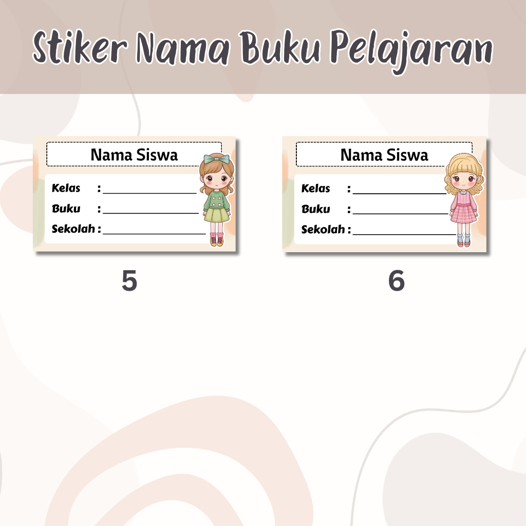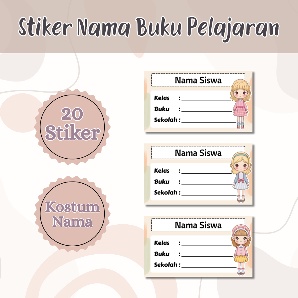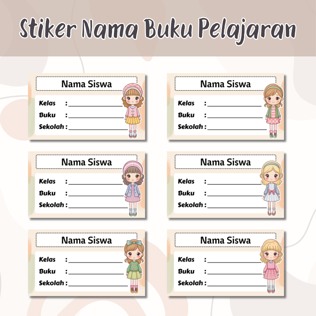 Stiker Label Buku Pelajaran cewek / Stiker Nama Mata Pelajaran / Label Nama buku /Stiker Lucu Kawaii