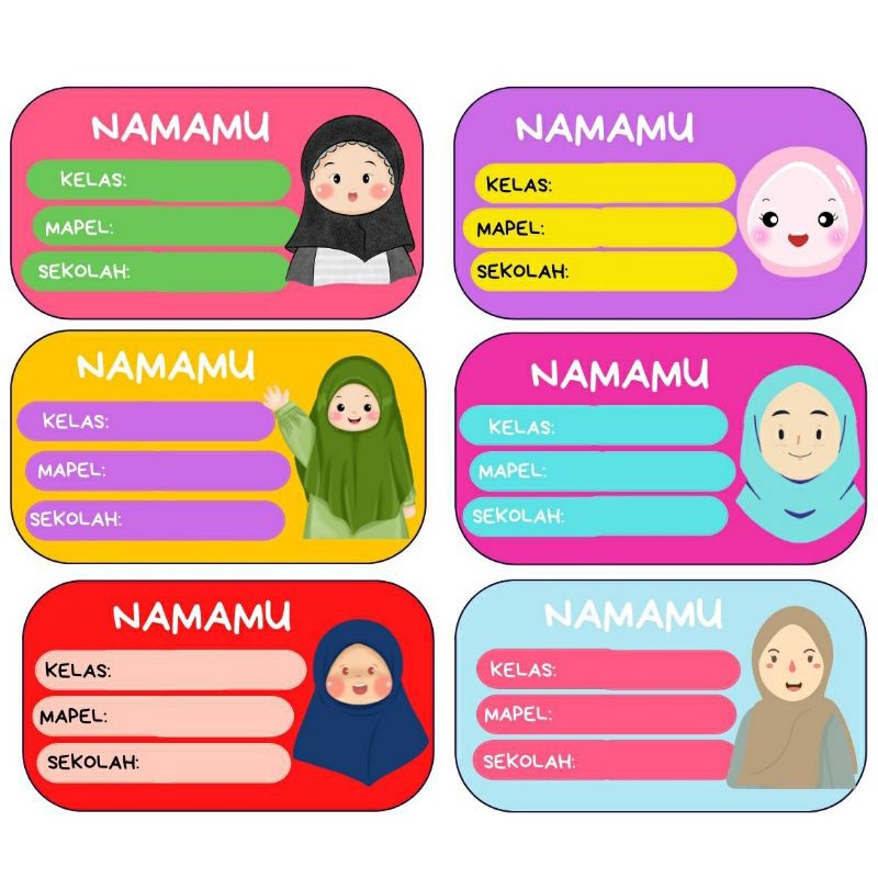 Stiker Label Buku Ukhty Hijab Isi 16 pcs Custom Nama
