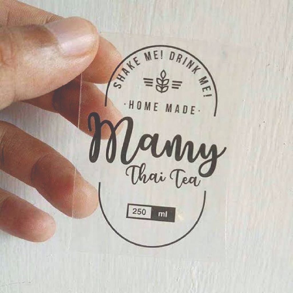 Stiker Label Kemasan Bahan Stiker Transparan 1 warna Hitam, Alternatif Sablon Cup Harga Murah
