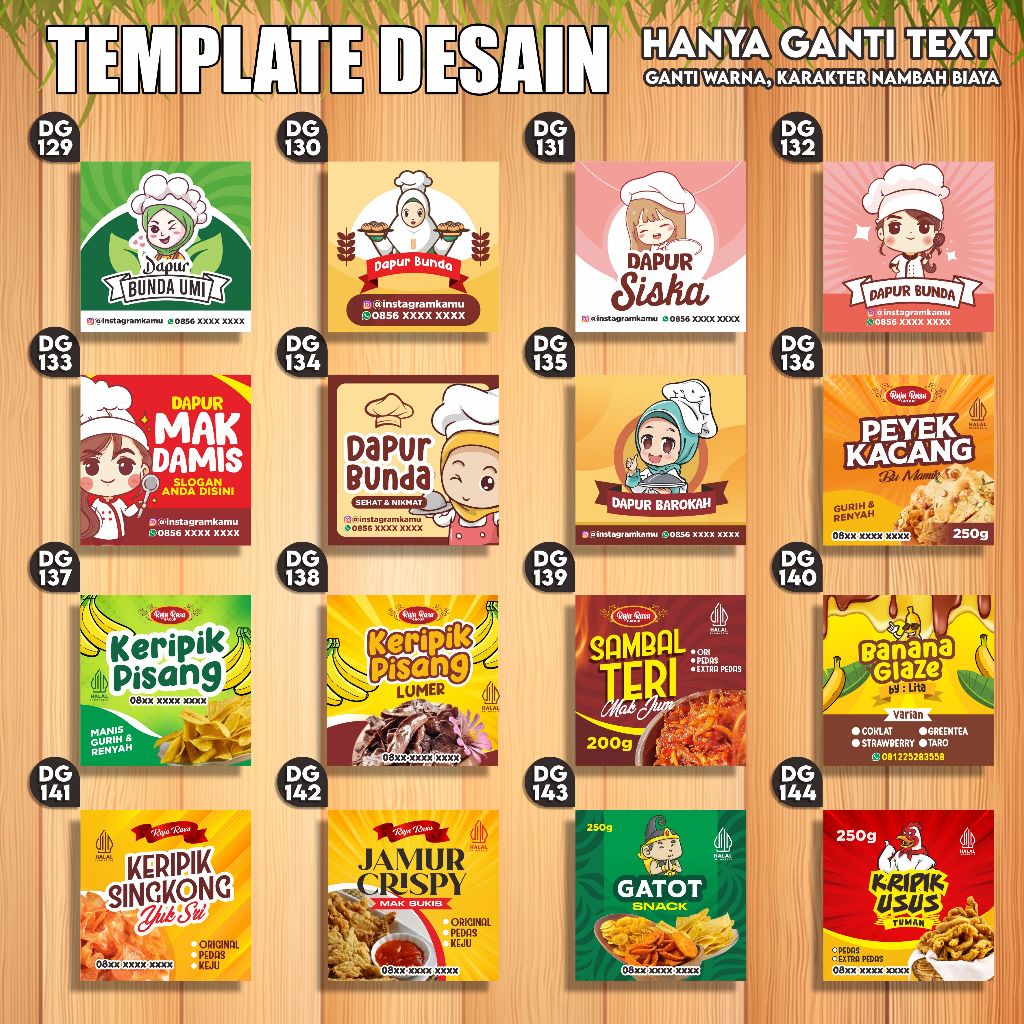 Stiker Label Kemasan Makanan Termurah, Label Camilan, Label Snack, Label Standing Pouch, Label Thinwall, Gratis Potong, Gratis Desain, Bentuk Kotak