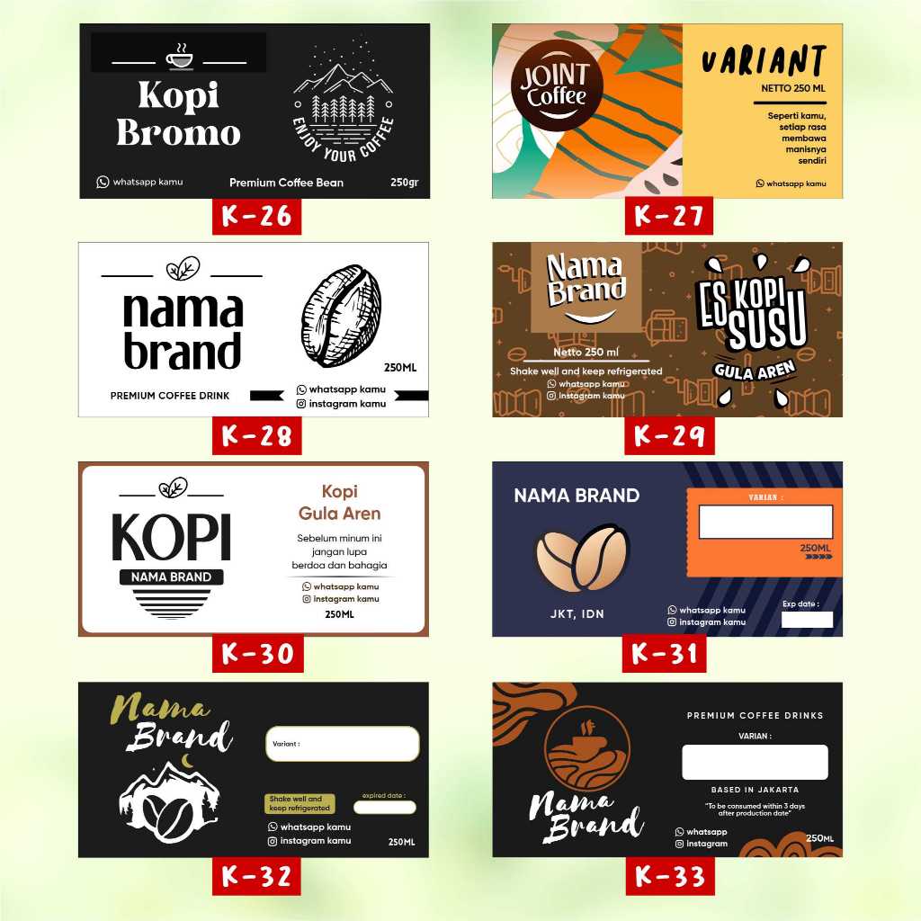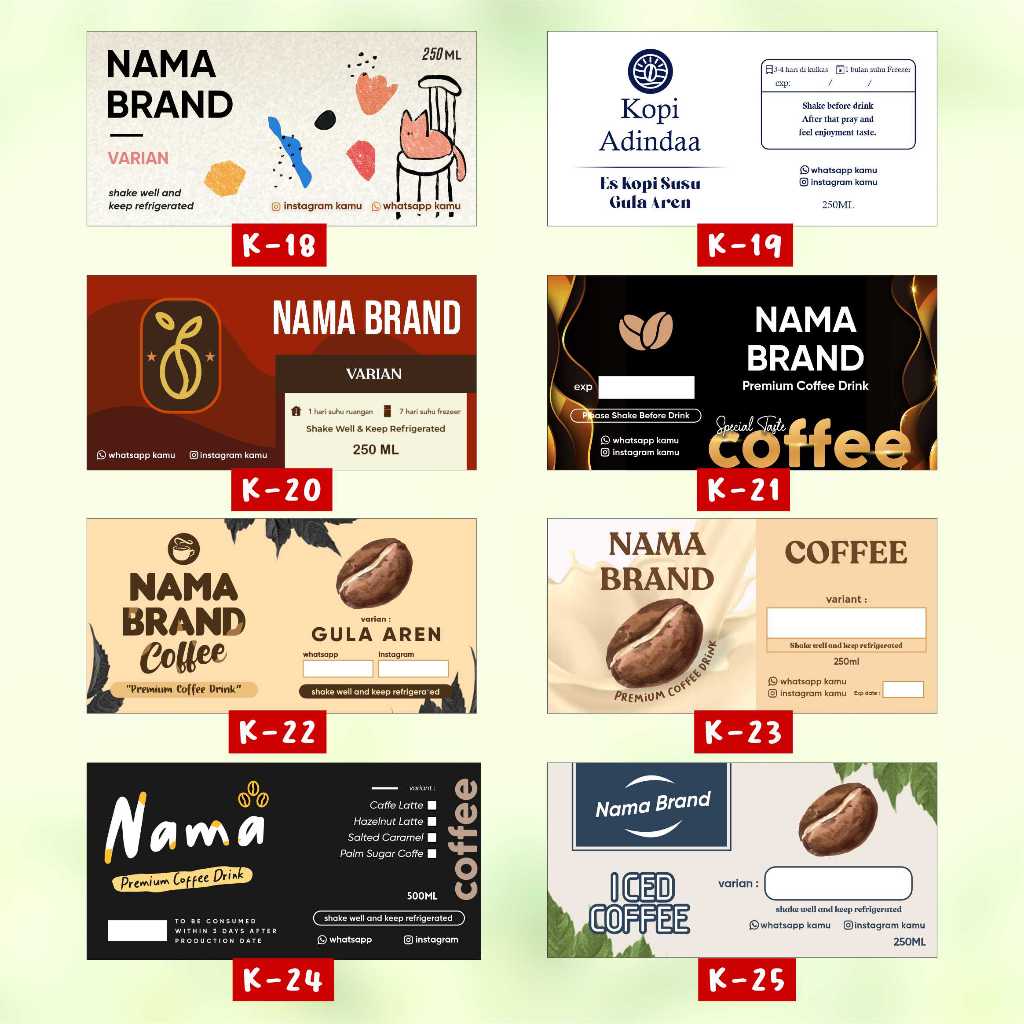 Stiker Label Kopi Botol Pir 250ml 330ml Stiker Minuman Custom Print Coffee Kekinian Hazelnut Cotton candy matcha okinawa machiato cold brew sakura latte
