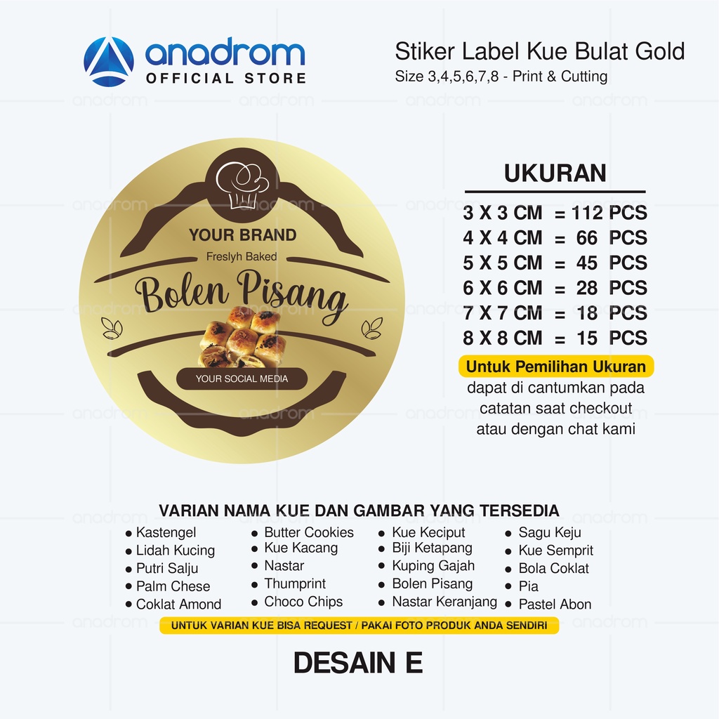 Stiker Label Kue Bulat Gold | Sticker Label Kue Kering | Anadrom 3328