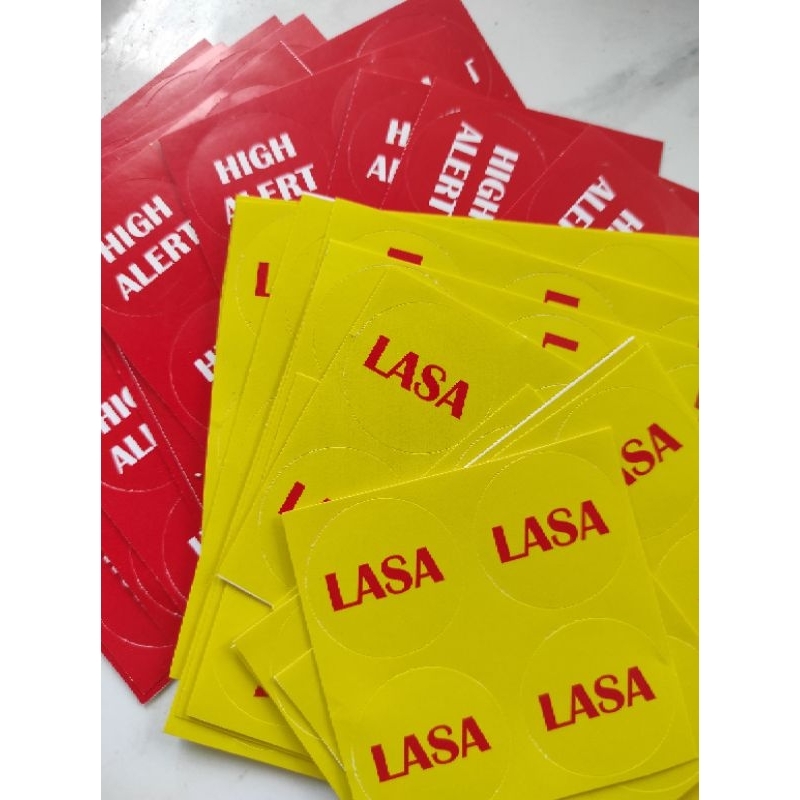 Stiker Label Lasa High Alert Fall Risk logi narkotika Bulat 3x3 cm
