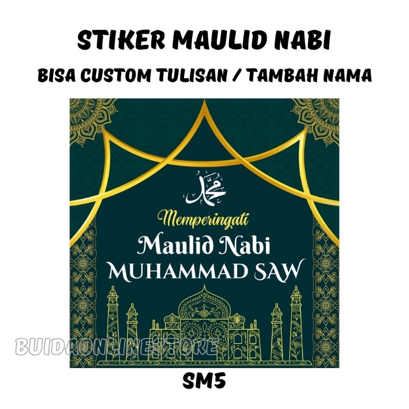 Stiker Label Memperingati Maulid Nabi Muhammad SAW Sticker Dekorasi Kemasan Hiasan dus box kotak mika paperbag bingkisan parcel hampers bisa custom tulisan tambah nama ukuran 4 5 6 7 8 9 10 cm