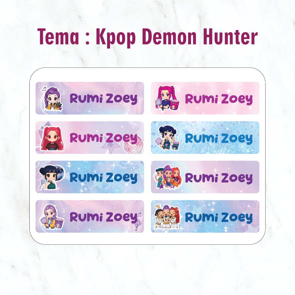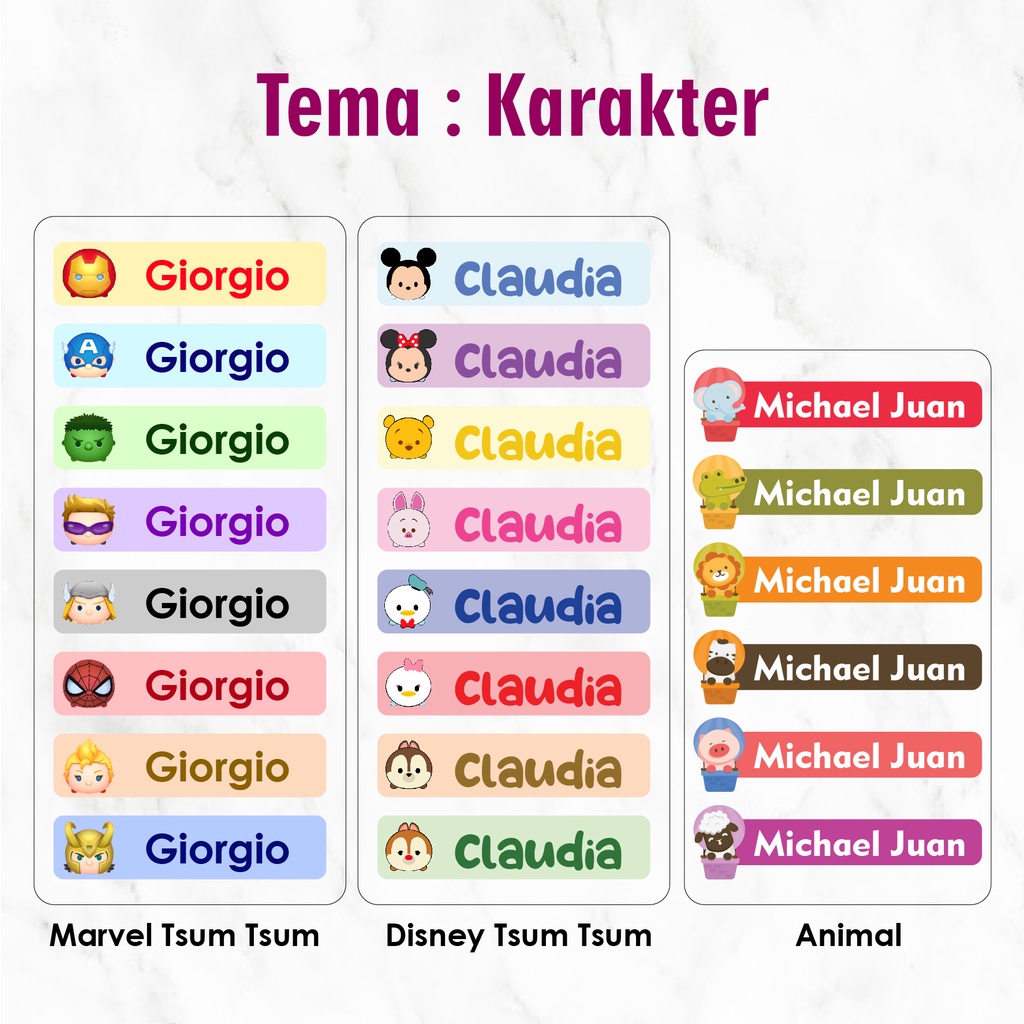 Stiker Label Nama Anak Custom Ukuran S isi 48 pcs Label Nama Anak Waterproof Tahan Air Stiker Pensil Warna Label Pensil Label Botol Minum sticker tempat makan stiker mainan stiker buku stiker kalkulator Warna Warni Disney Tsum Tsum karakter