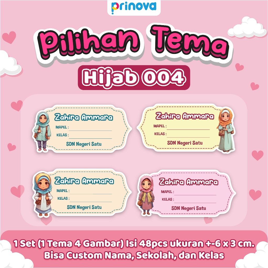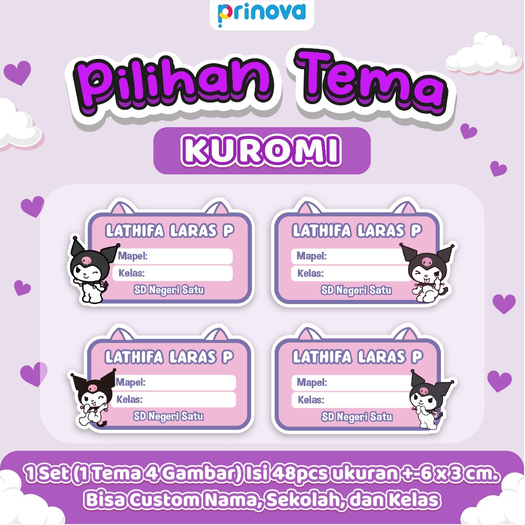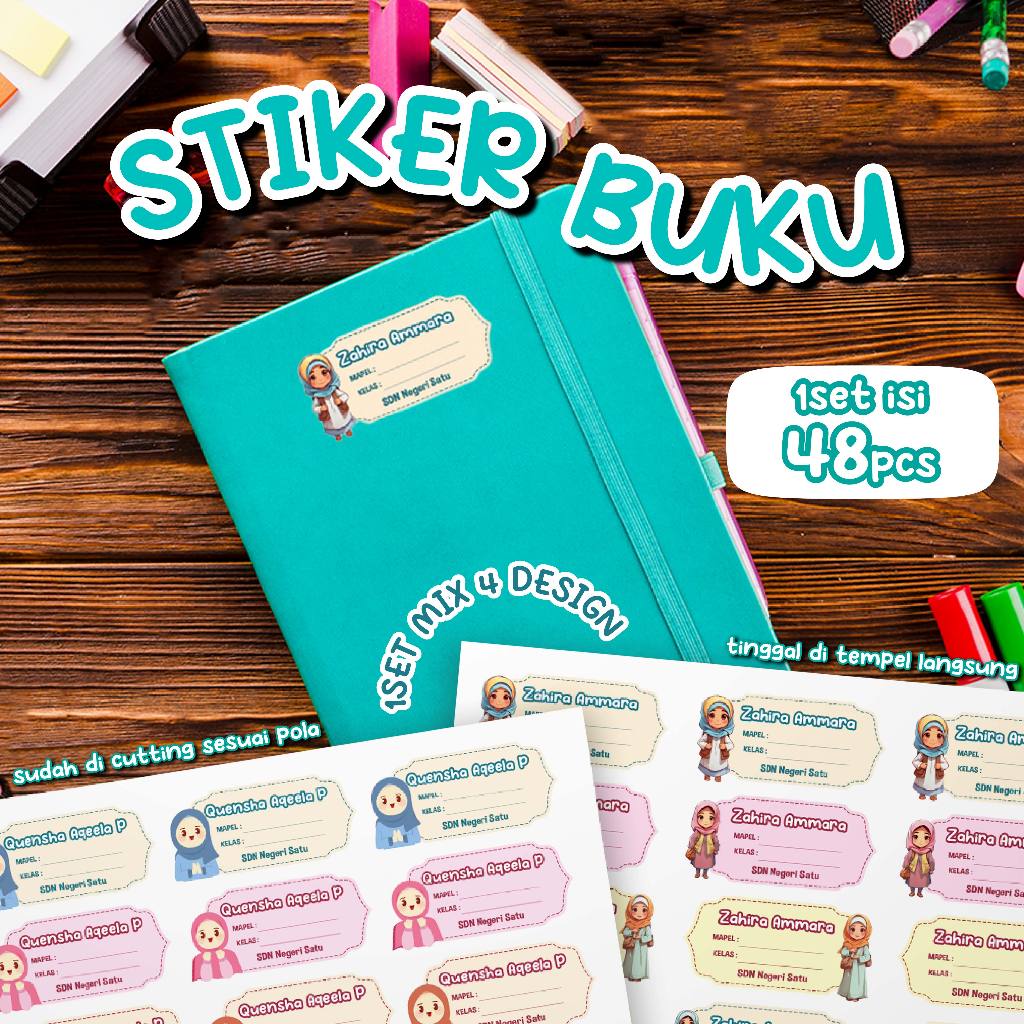 Stiker Label Nama Buku Anak Sekolah Custom isi 48pcs bisa tambah Nama kelas sekolah