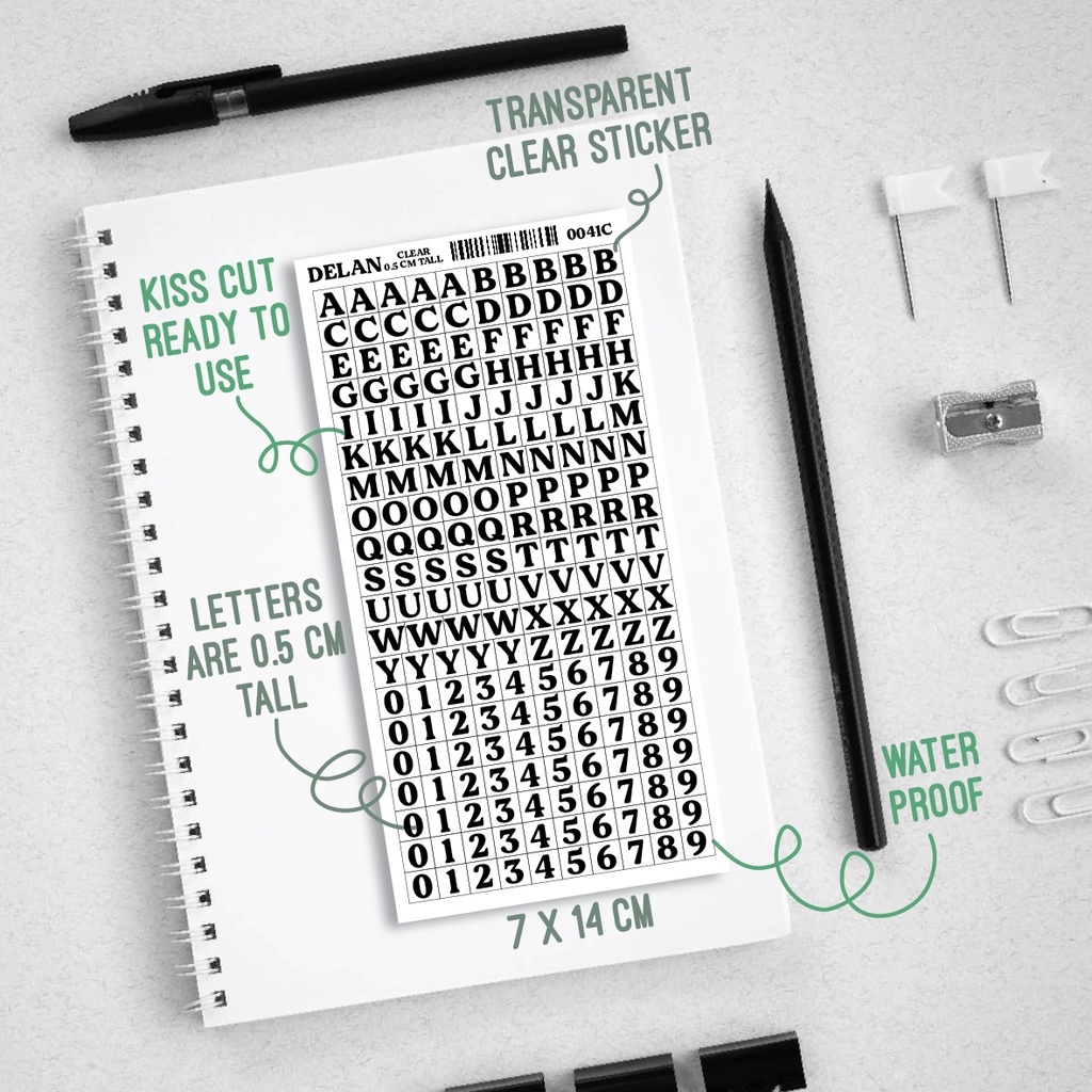 Stiker Label Nama Huruf Besar Hitam Putih dan Angka Clear Bening 1 CM dan 0,5 CM Tahan Air StickerParty 0041