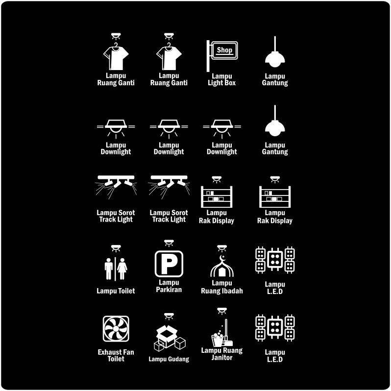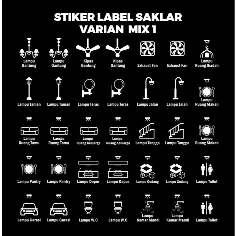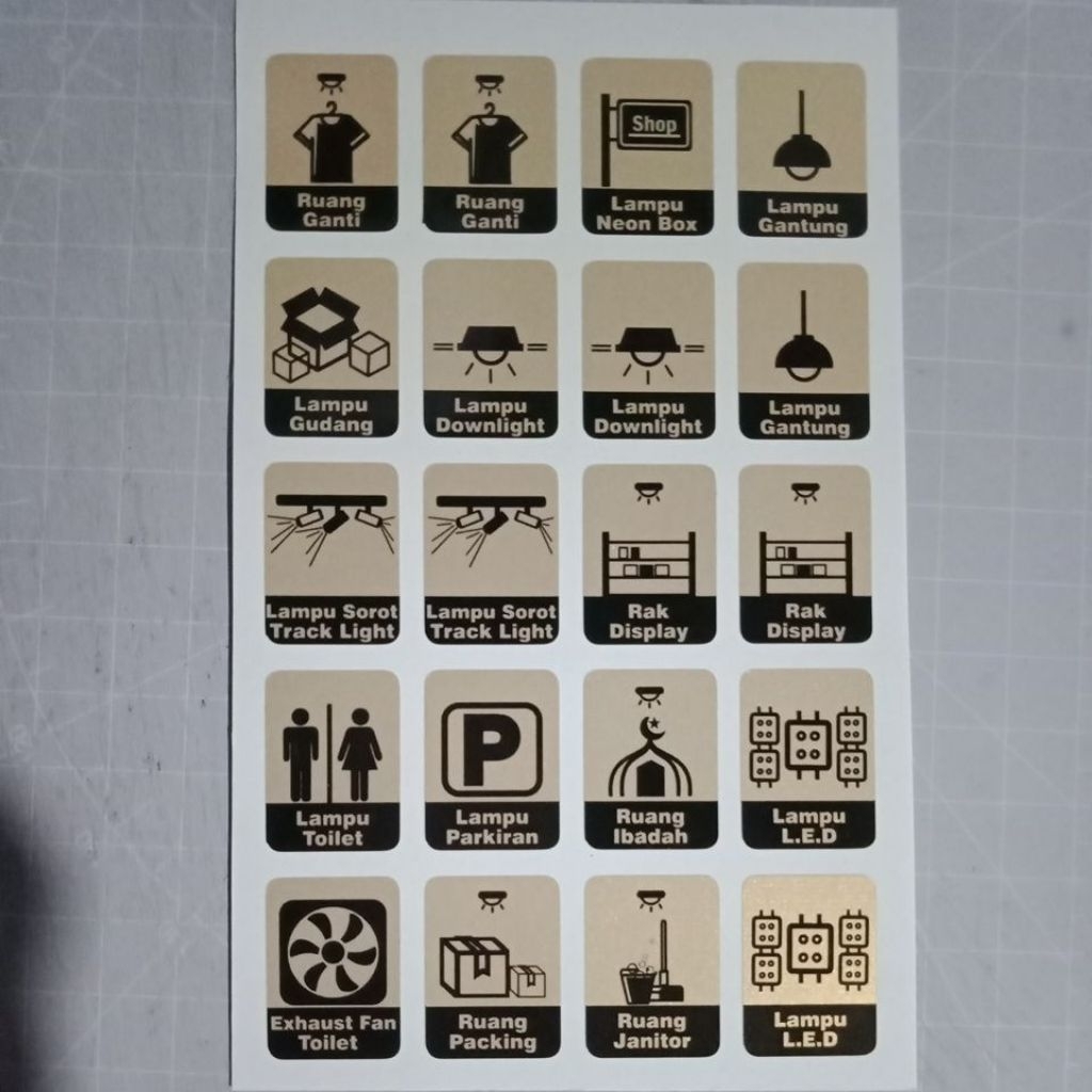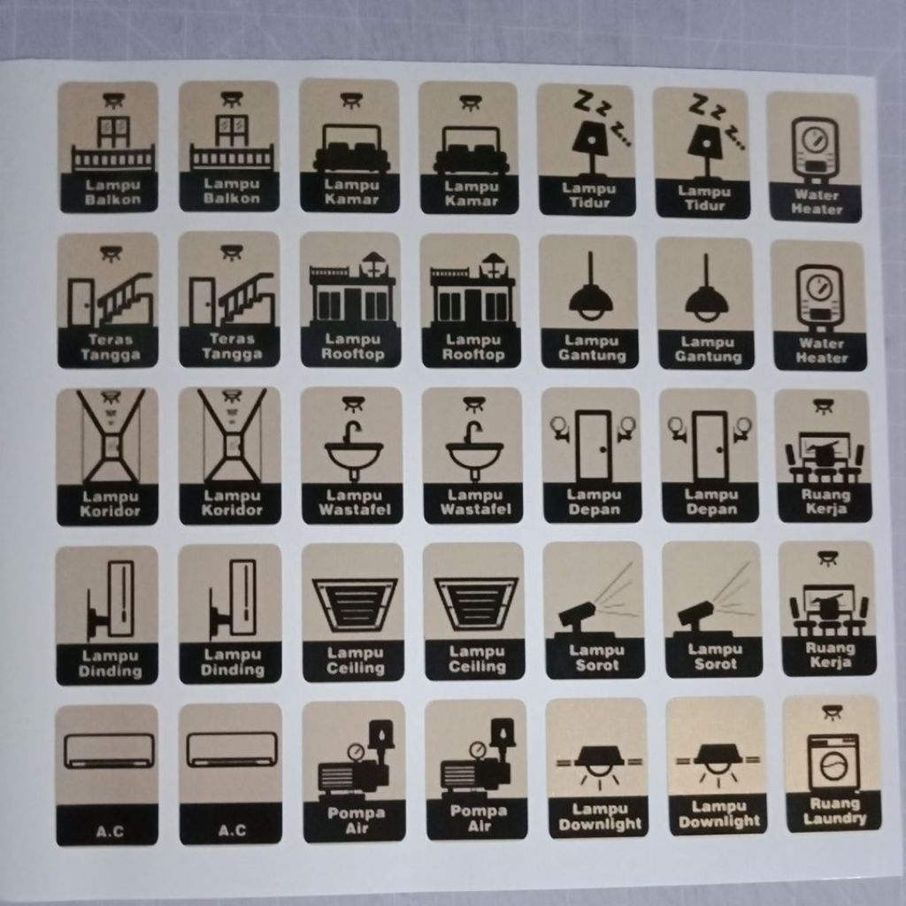 Stiker Label Saklar Penanda Lampu | Stiker Switch Lampu | Stiker Hitam Tulisan Putih | Stiker Label Saklar 1lembar isi 35pcs