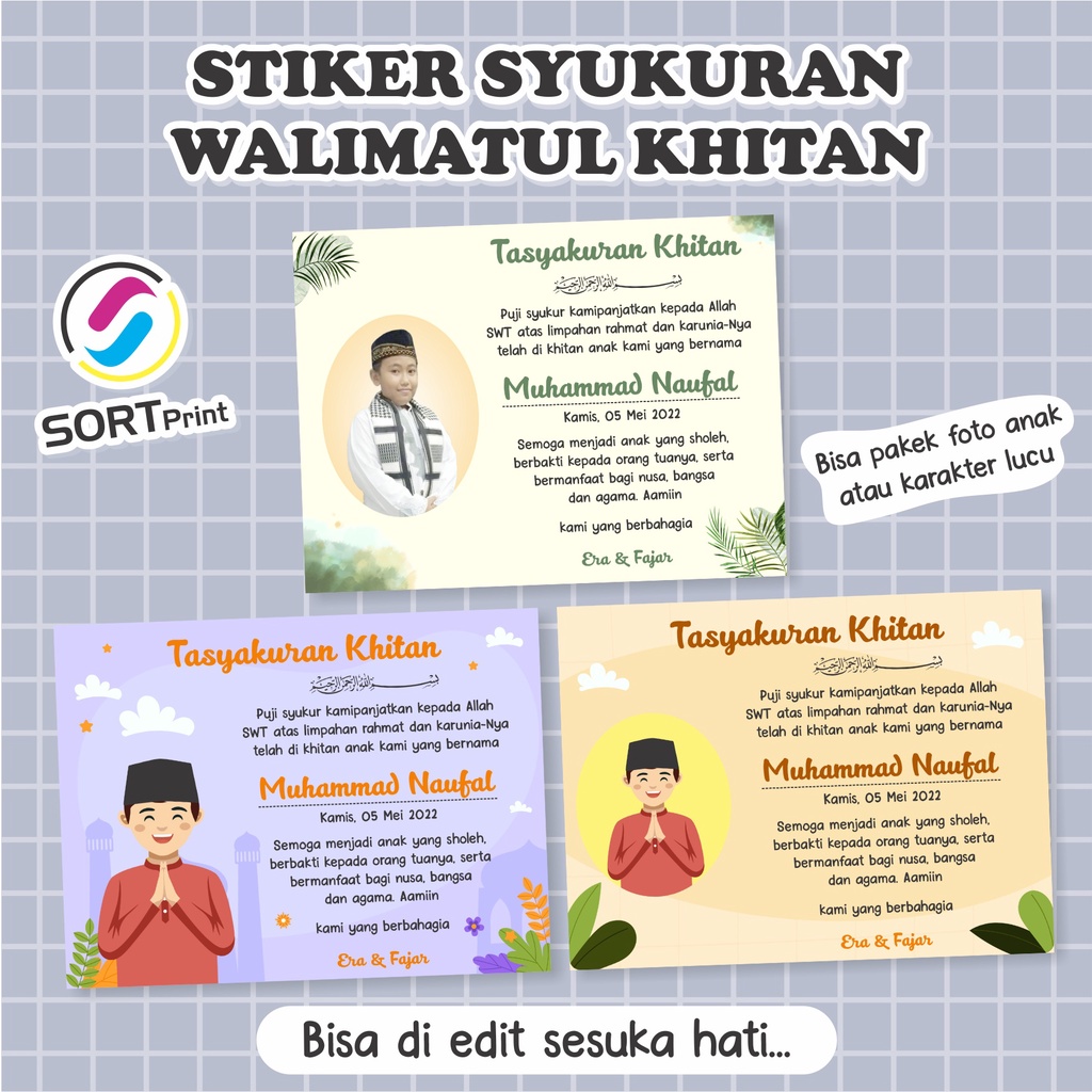 Stiker/ Label Syukuran Khitanan - Tasyakur Walimatul Khitan - Stiker Kotak Nasi /Undangan nasi kotak khitan