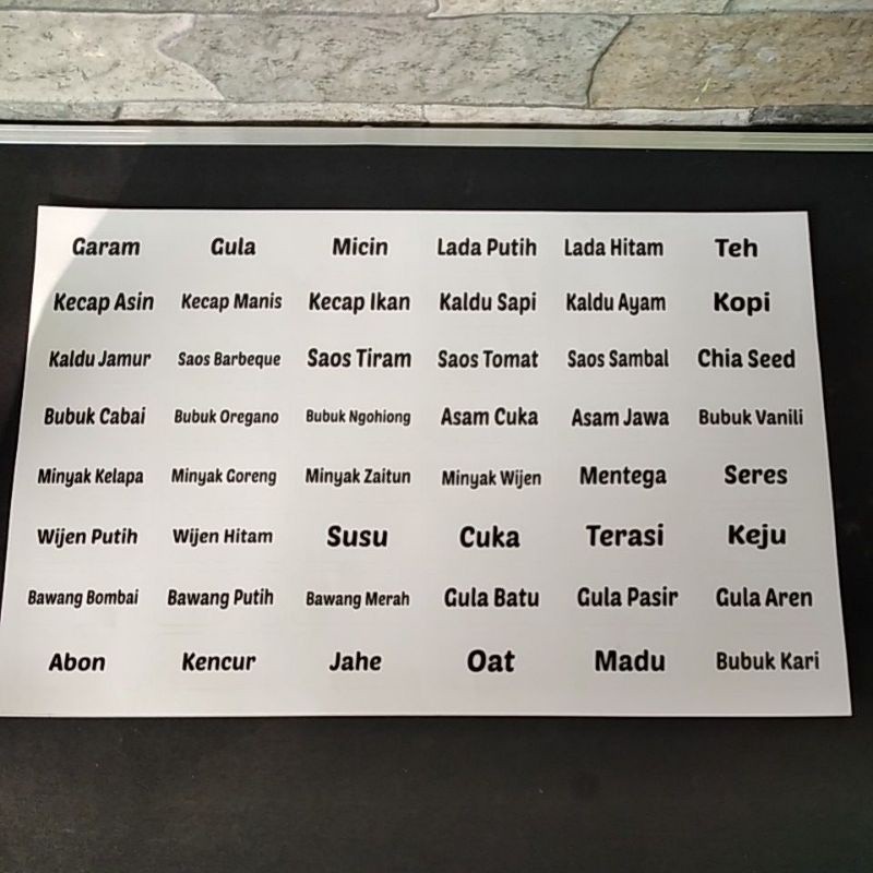 Stiker Label Transparan Nama-Nama Bumbu Dapur WATERPROOF 48Pcs Ready