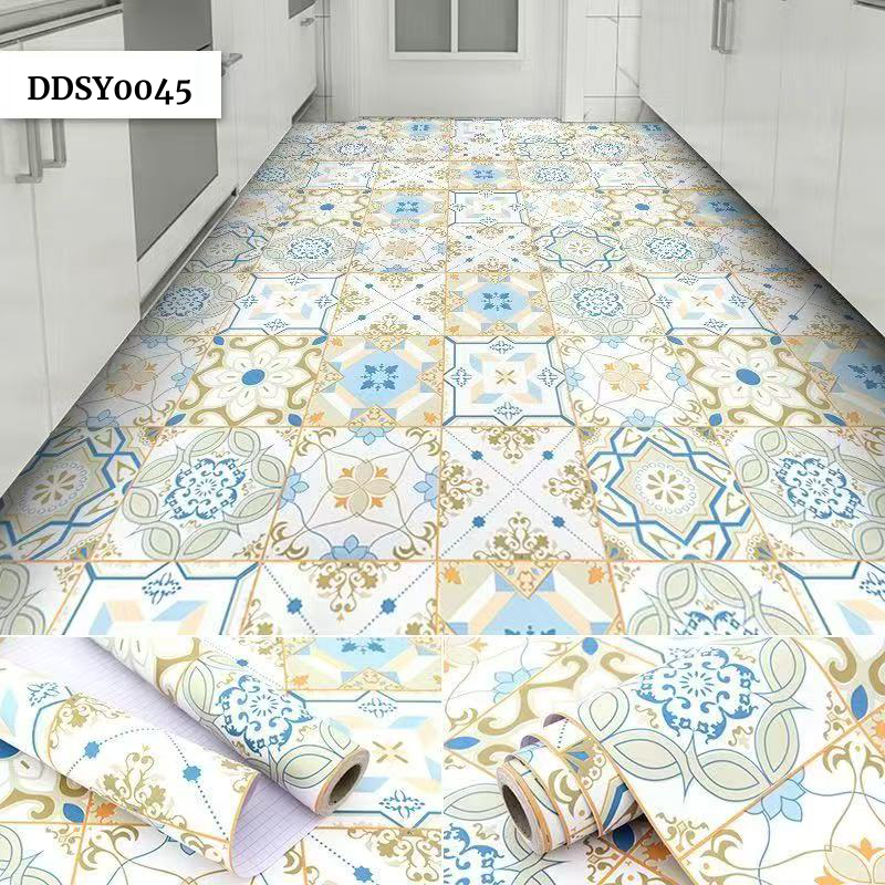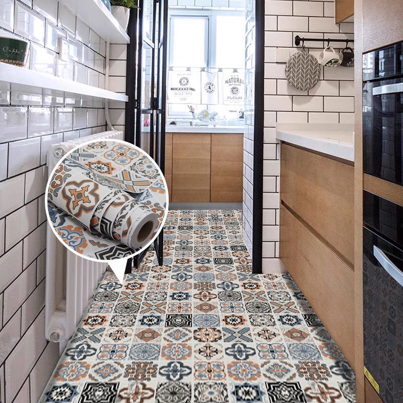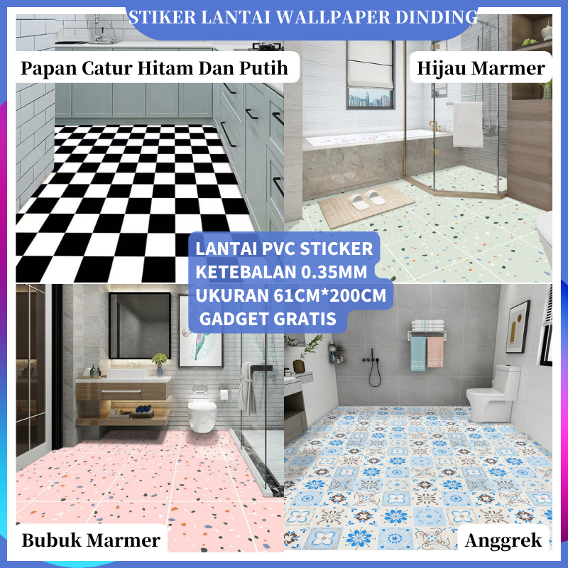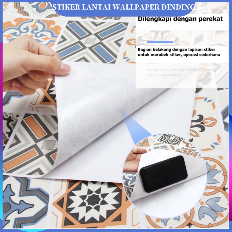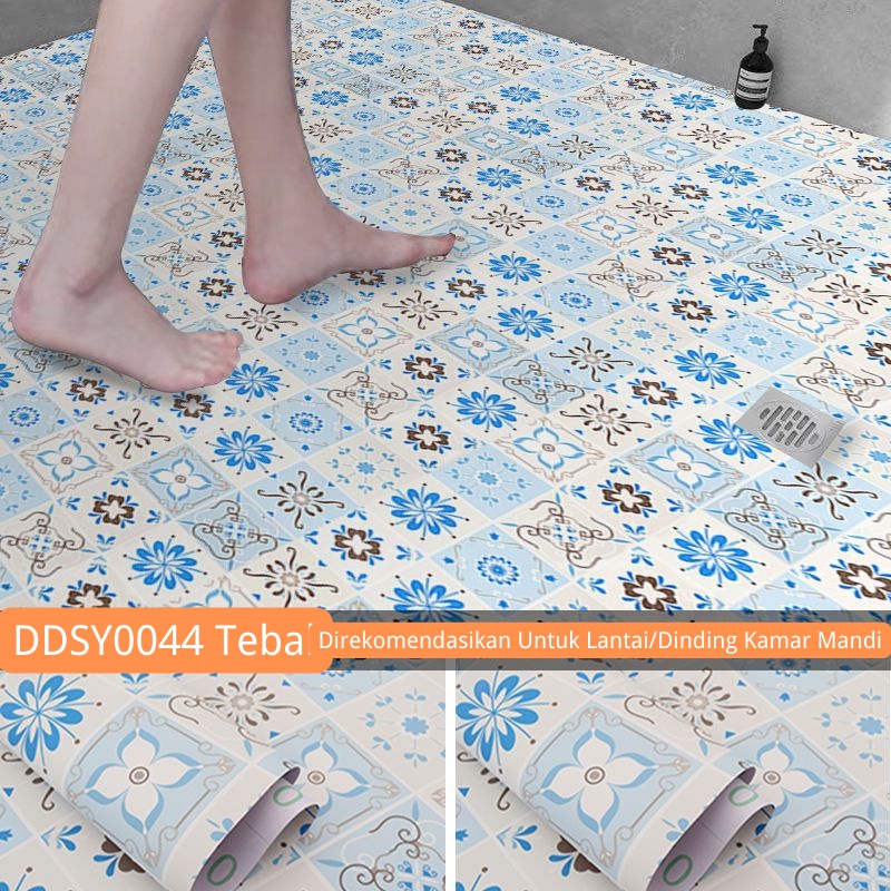 Stiker Lantai Kamar Mandi Tahan Air PVC Walpaper Dinding Dekorasi Kamar Mandi Perekat Diri 61*200cm Motif Batik Kualitas Tinggi