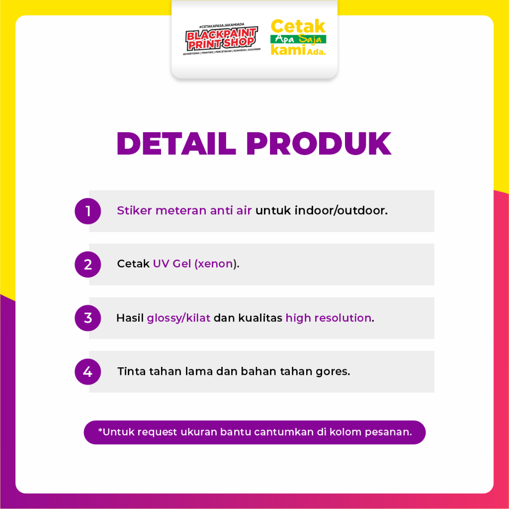 Stiker Meteran Ritrama Glossy / Cetak Stiker Outdoor / Stiker Printing Anti Air (Print UV GEL)