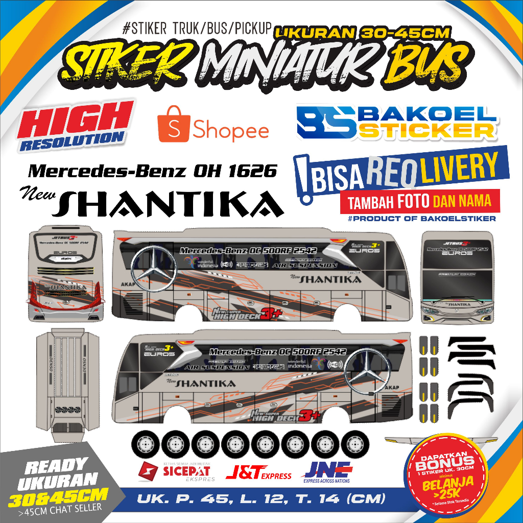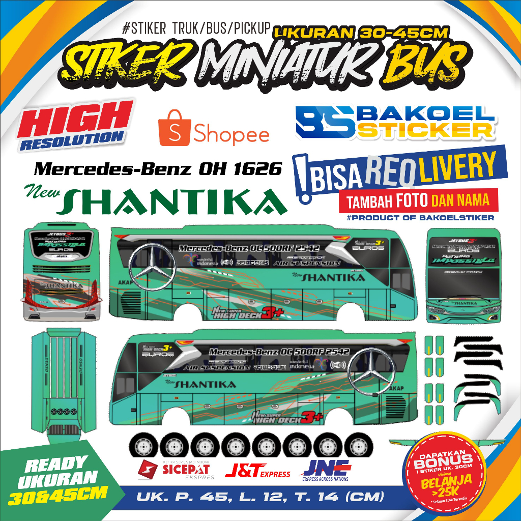 Stiker Miniatur BUS JB3 PO. New Shantika Uk. 30 dan 45cm