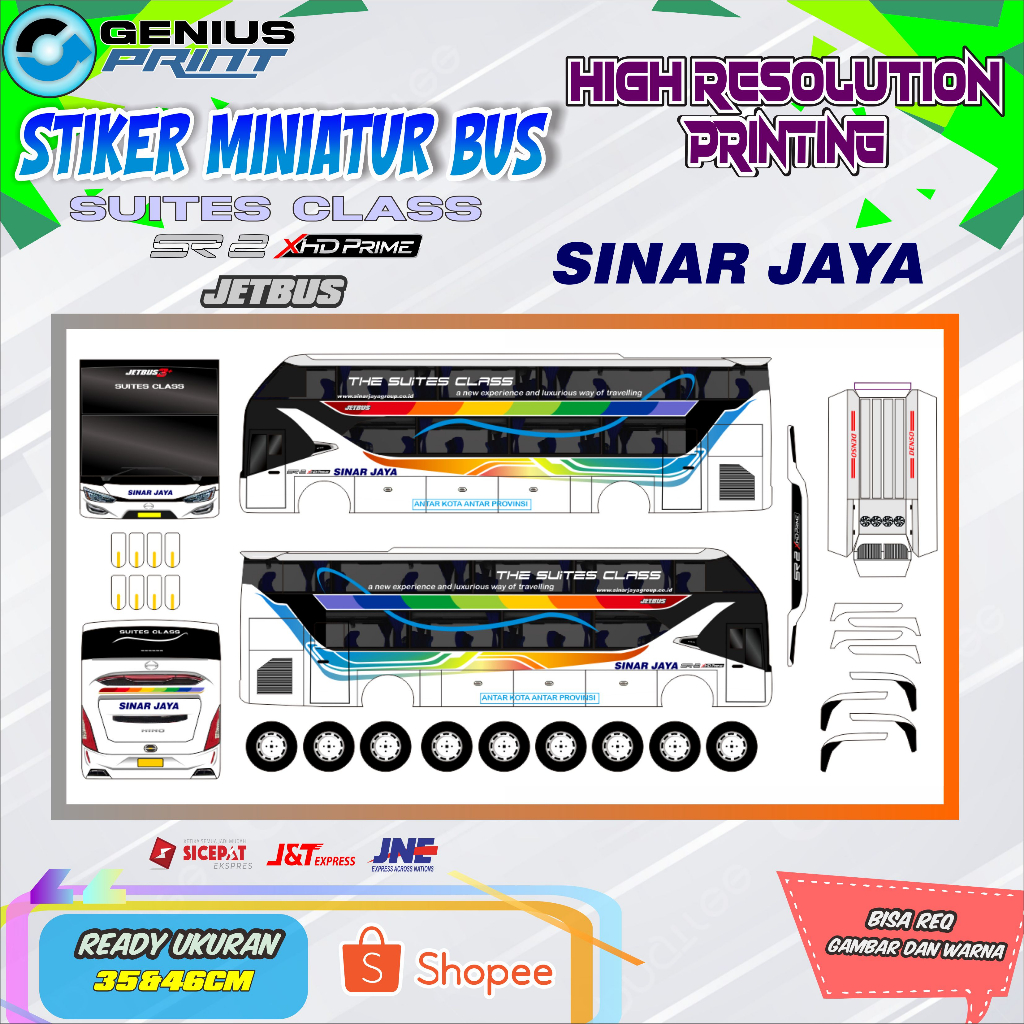 Stiker Miniatur Bus Suites Class Livery Sinar Jaya | Handoyo | Pandawa 87 | Sahaalah | Karunia Bakti Uk. 35&46cm