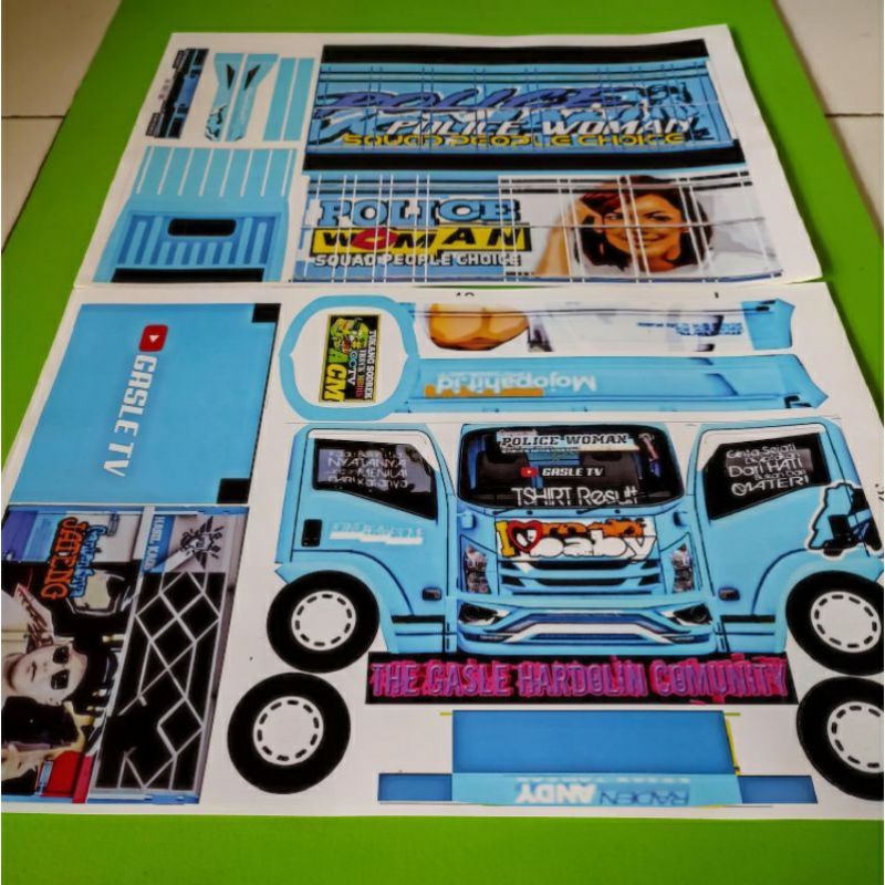 Stiker Miniatur Truk Oleng Papercraft Truck Oleng police woman