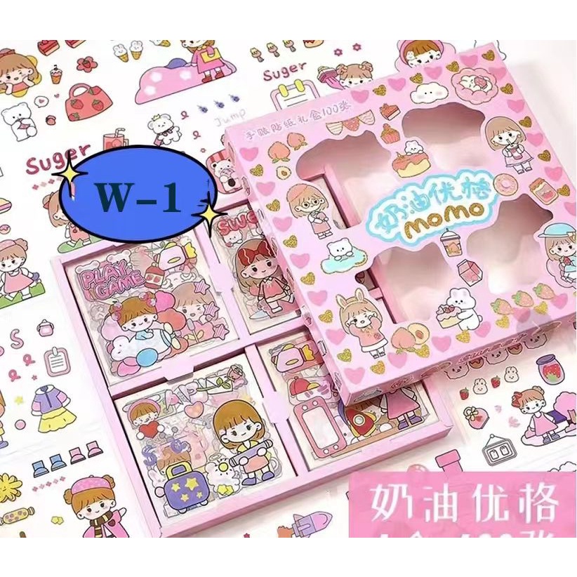 Stiker Momo Mixue Masu isi 100pcs Anti Air Stiker Karakter Cewe Cute /Stiker Masu/Sticker Masu/Stiker 2D Motif Kartun Korea Lucu 100 Lembar Anti Air Dekorasi Handbook Scrapbook DIY Sticker Kartun Tahan Air PET