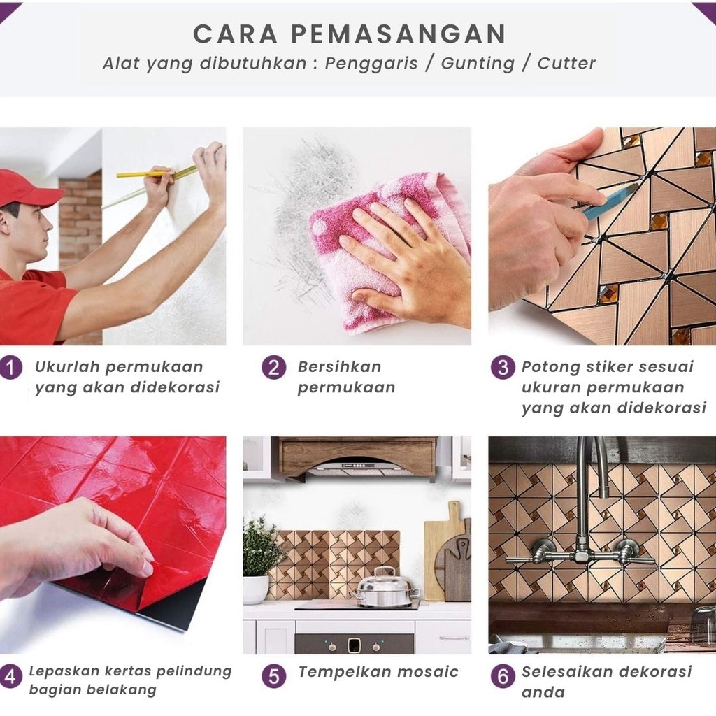 Stiker Mosaik Aluminium 30x30cm / Sticker Mosaic Dinding / Backsplash Mozaik
