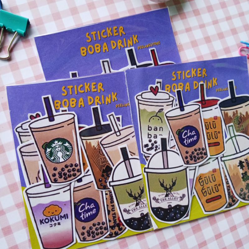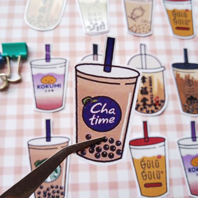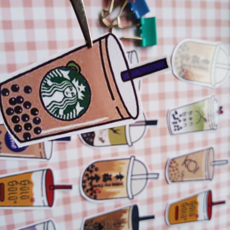 Stiker Motif Minuman Boba Versi 1 isi (12pcs) Medium Size Untuk Dekorasi Jurnal Lettering Hp Laptop Tablet Buku