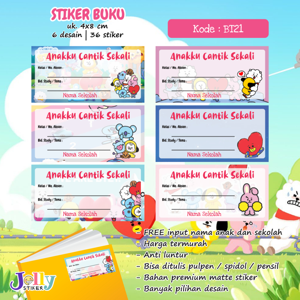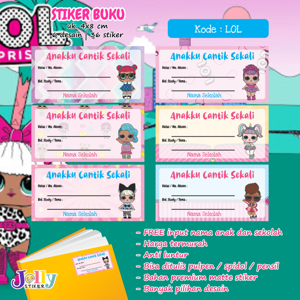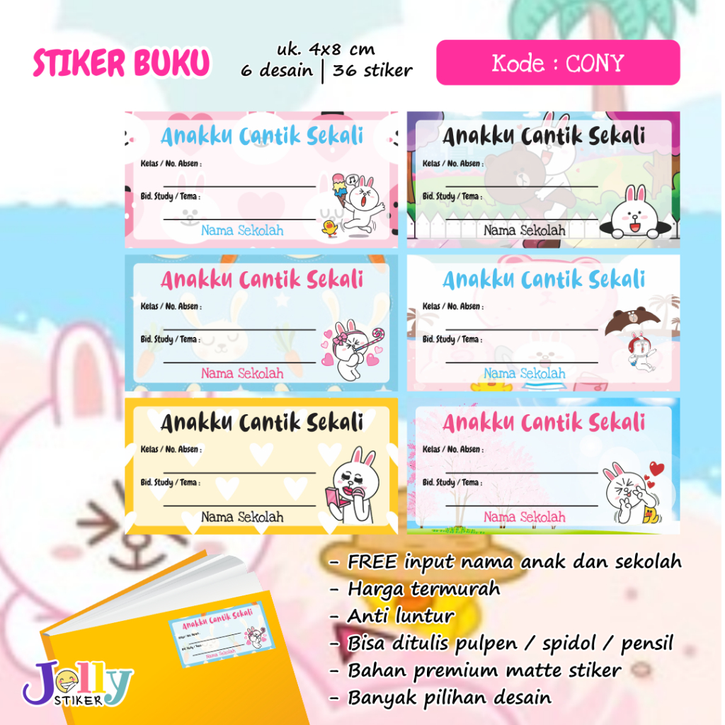 Stiker Nama Buku Custom Tema Kartun Sticker Label Buku Pelajaran Anak Lucu