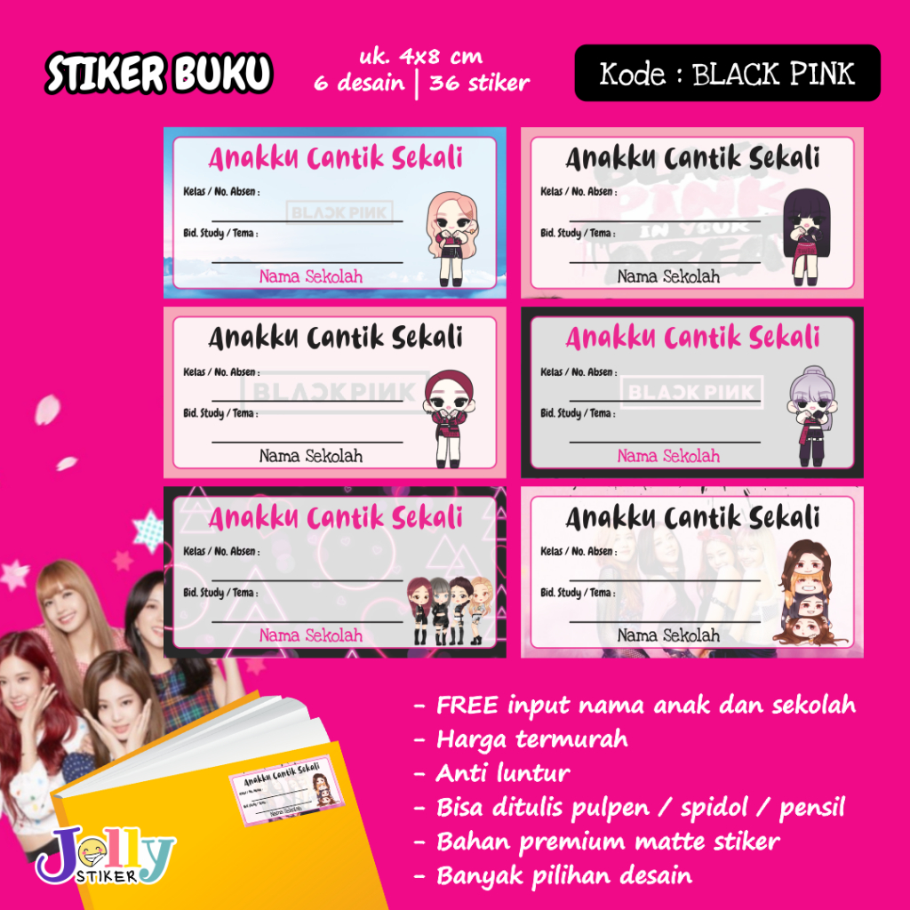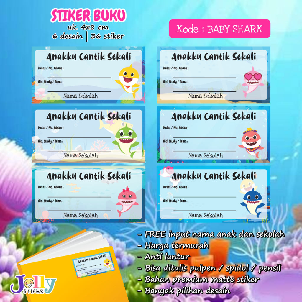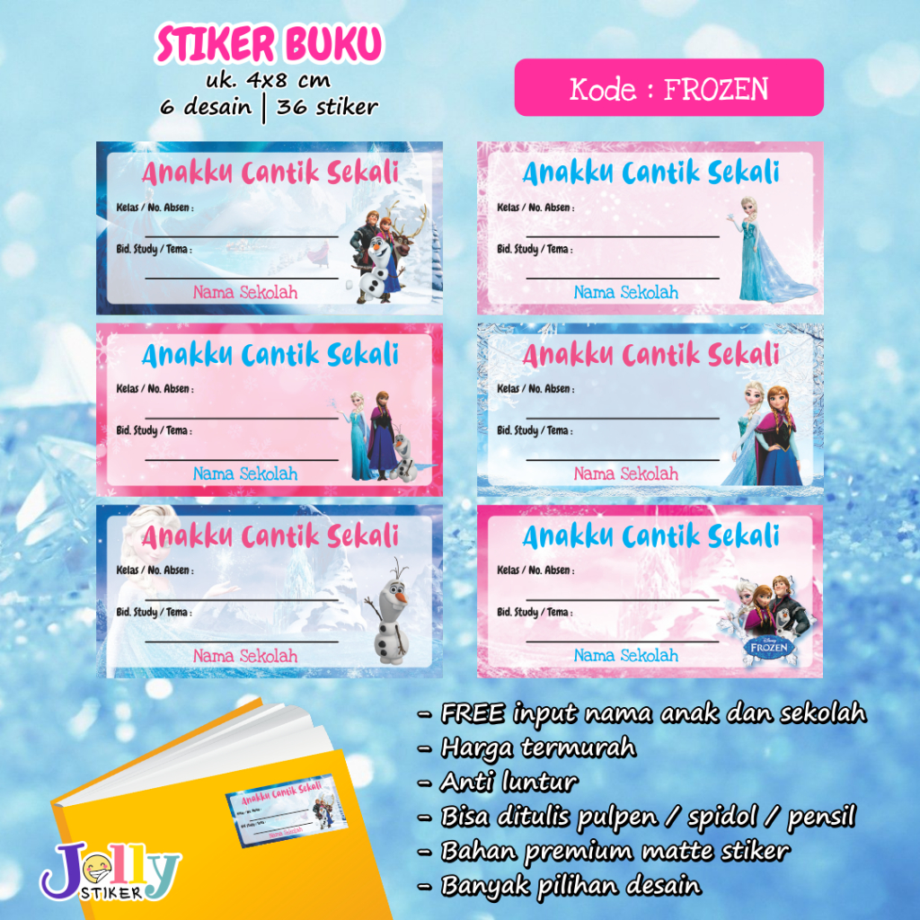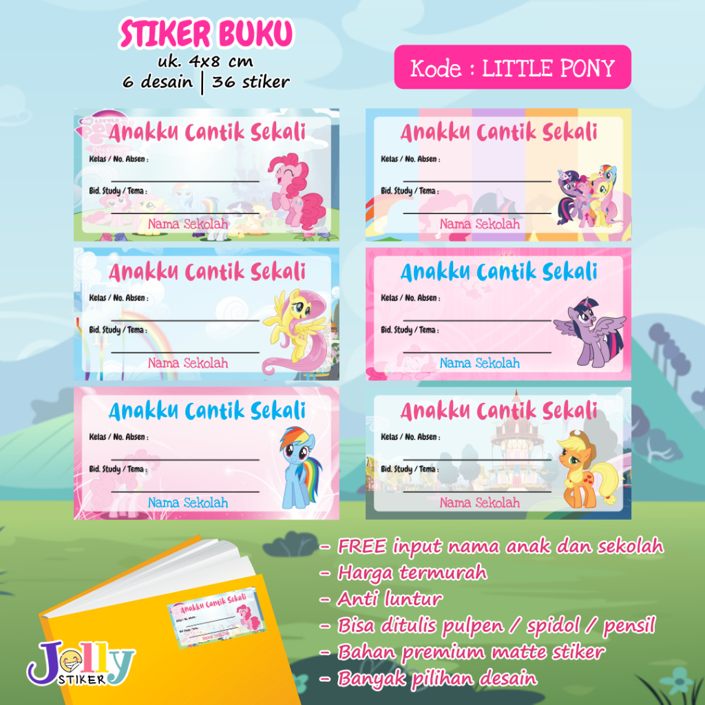Stiker Nama Buku Custom Tema Kartun Sticker Label Buku Pelajaran Anak Lucu