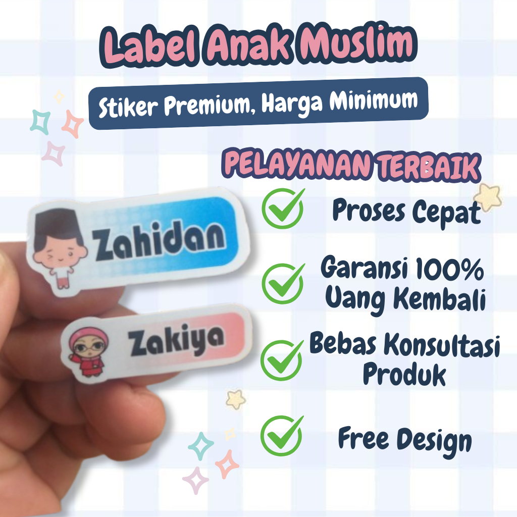 Stiker Nama Sticker Nama Sticker Label Nama Custom Karakter Muslim Anti Air [PURNAMA STICKER]