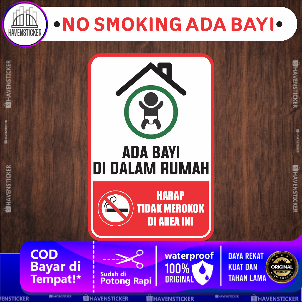 Stiker No Smoking Ada Bayi Laminasi Glossy