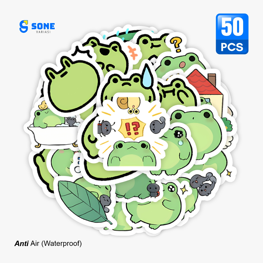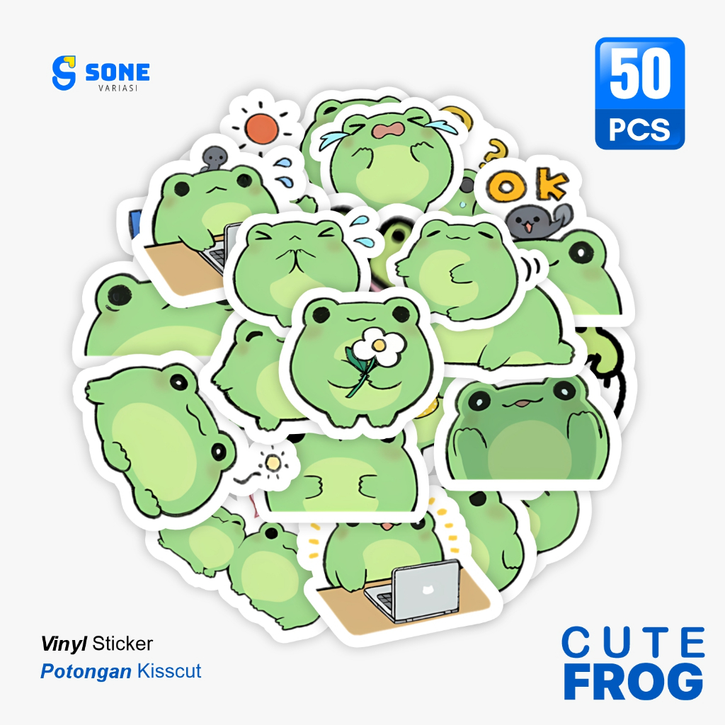 Stiker Pack CUTE FROG/ Sticker Kartun Anak Paper Vinyl Waterproof Glossy Dekorasi Buku Jurnal