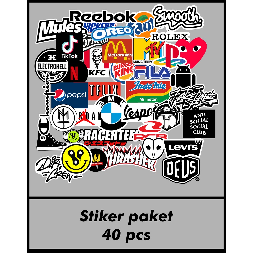 Stiker Paket isi 40 pcs Sticker Brand distro berkualitas waterproof