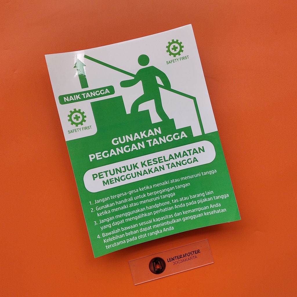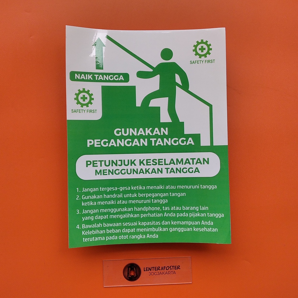 Stiker - Petunjuk Keselamatan Menggunakan Tangga - Gunakan Pegangan Tangga - Stiker Bahan Vinyl