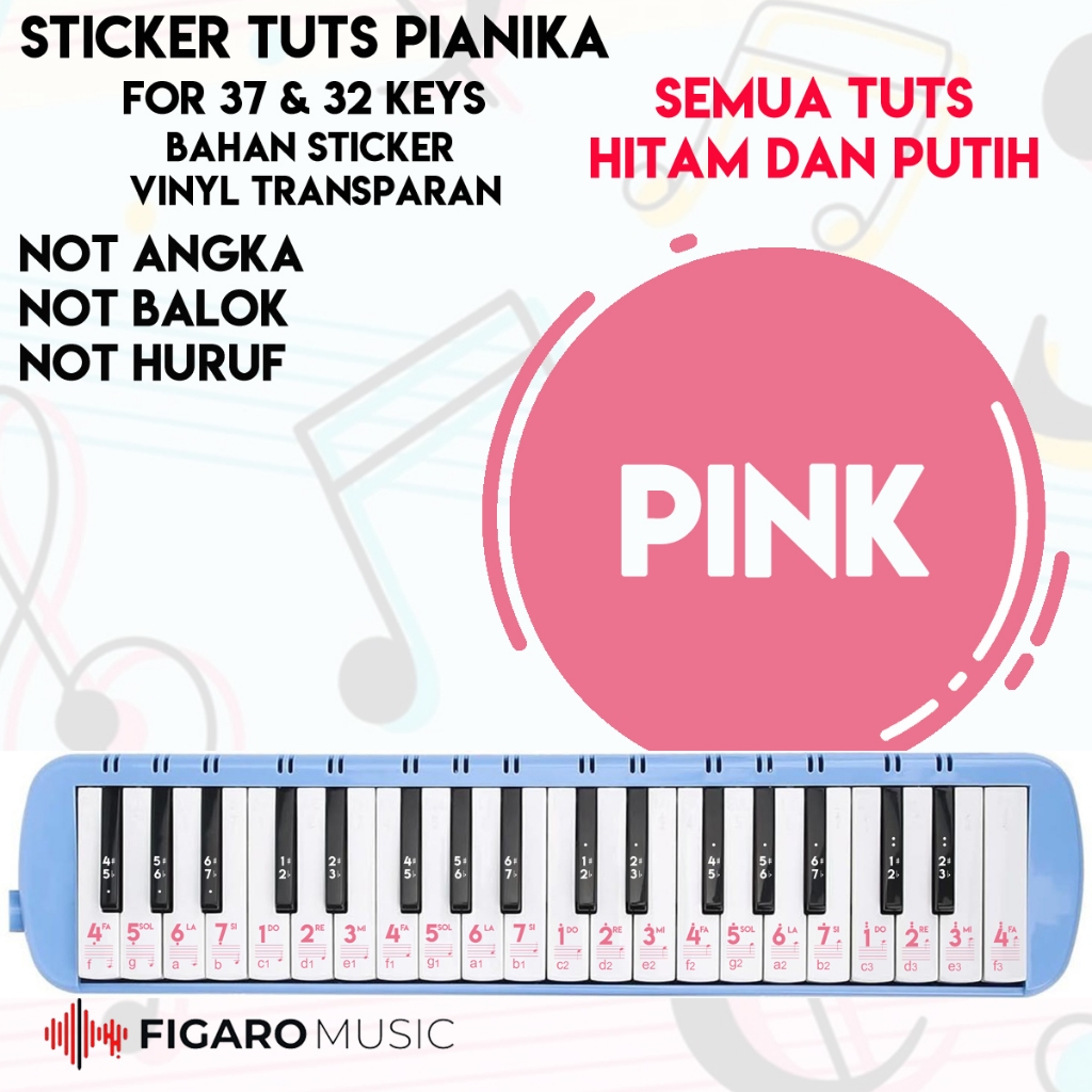Stiker Pianika 37 Keys, 32 Keys - Sticker Tuts Pianika Melodica Simple Polos - DOREMI, NOT ANGKA, NOT HURUF, NOT BALOK