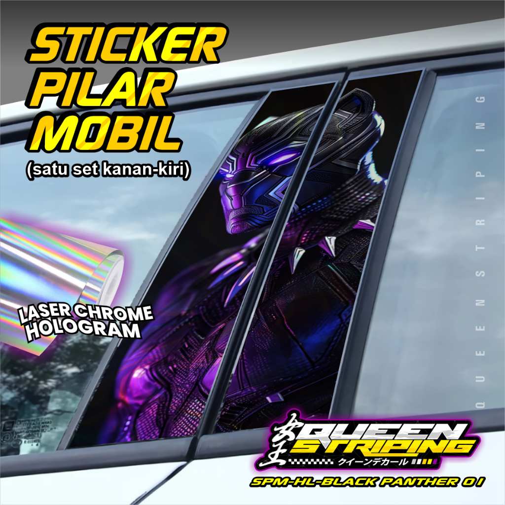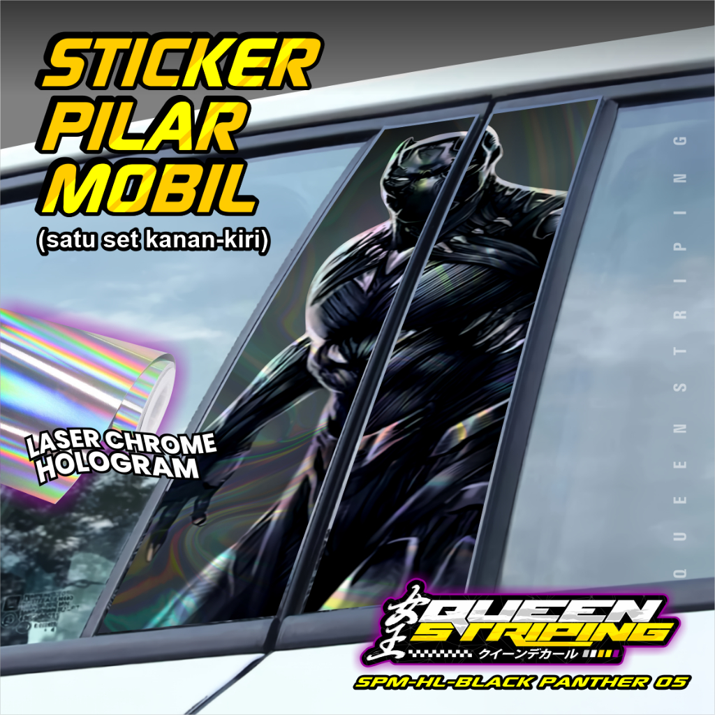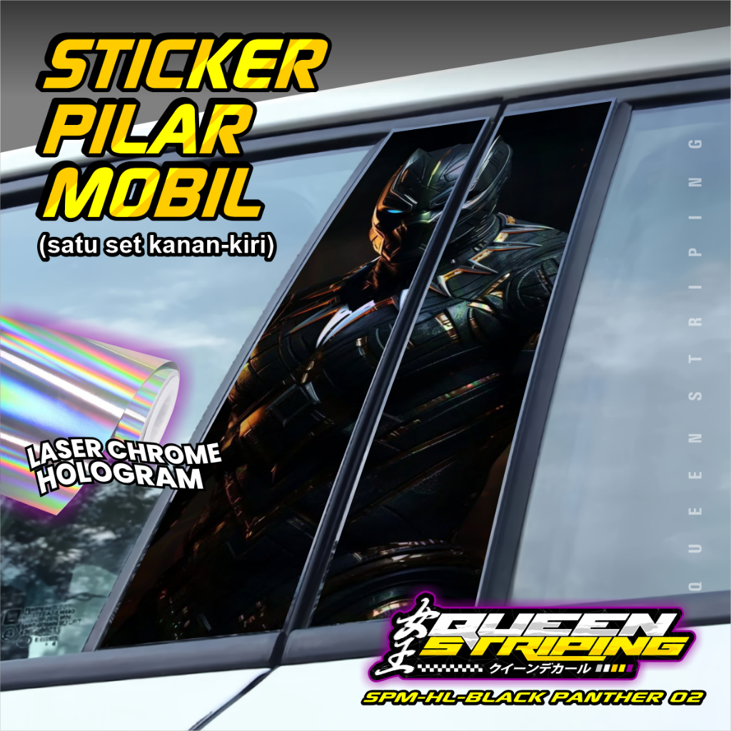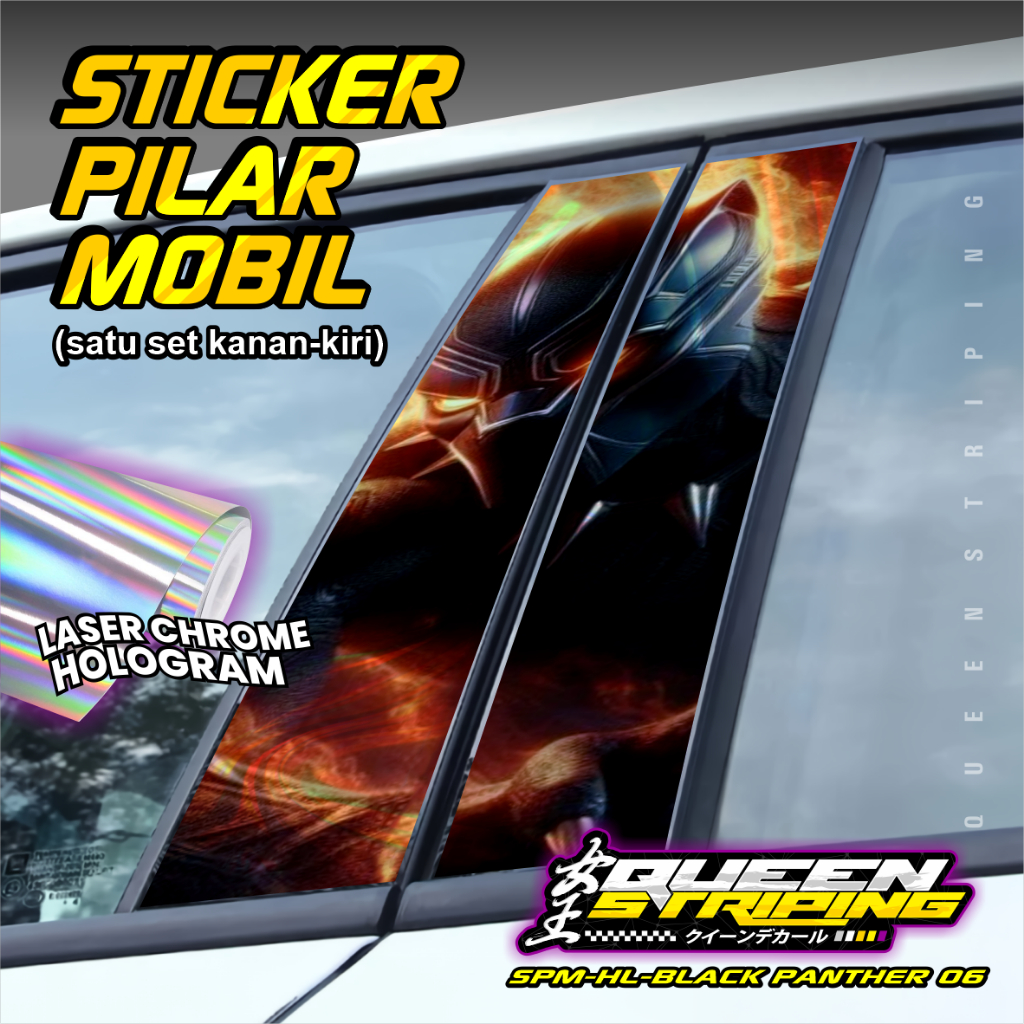 Stiker Pilar Mobil Universal 1 Set Kanan Kiri Desain Motif Black Panter - SPM