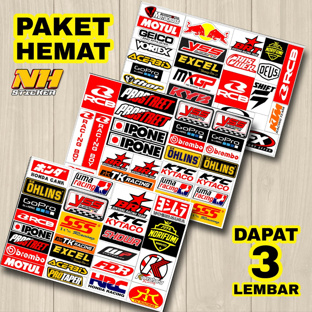 Stiker Racing Pack Sticker Variasi Motor Paket Hemat 3 Lembar