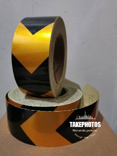 Stiker Reflective Tape Panah / Sticker Panah Rambu-Rambu Kuning-Hitam 5cm x 45m