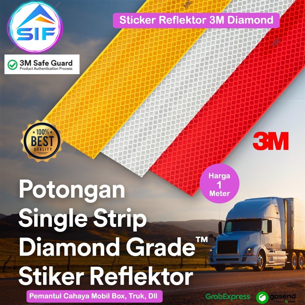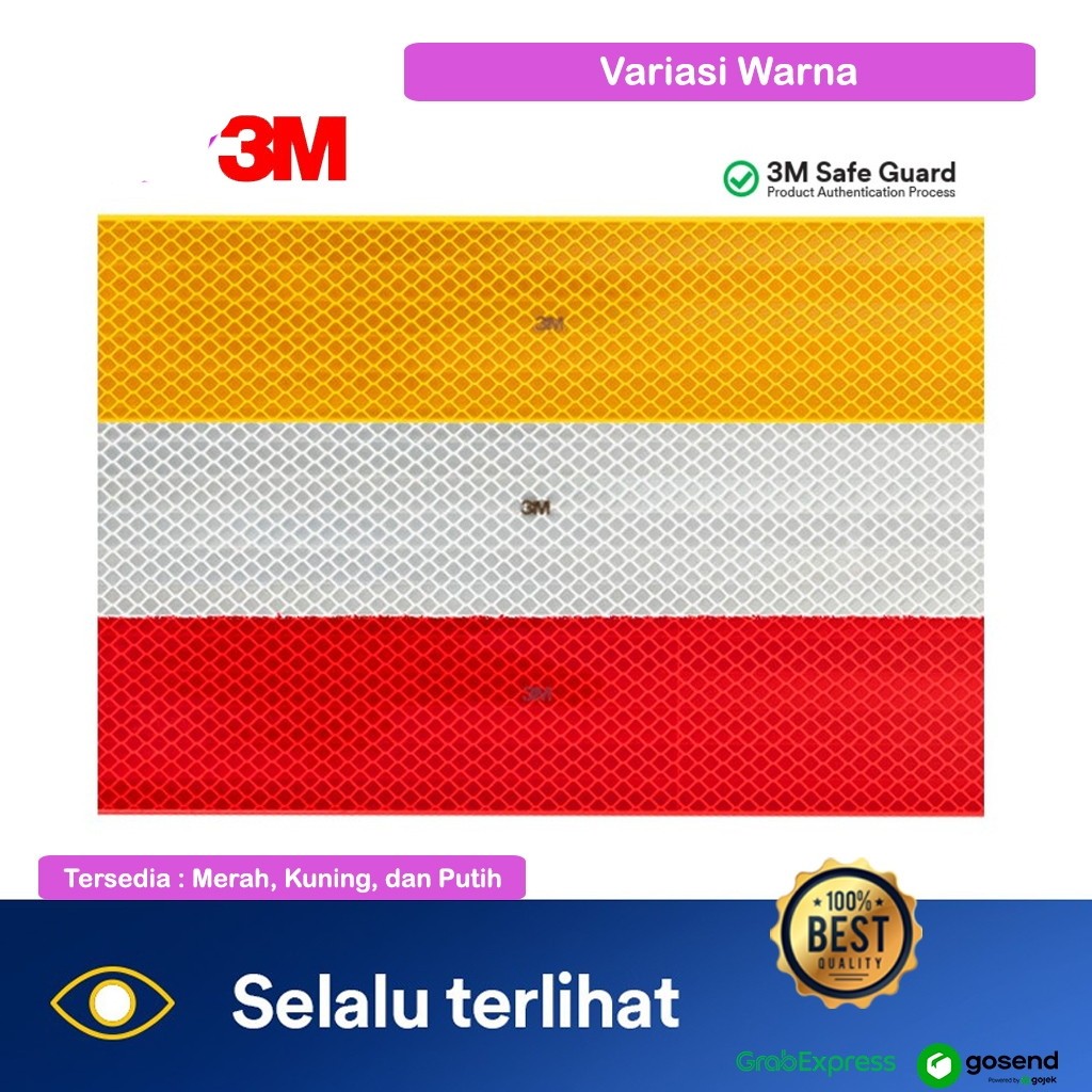 Stiker Reflektor Emblem Mobil 3M Sticker Reflektif Diamond Pemantul Cahaya Lakban Dengan Perekat Scotlight Warning Sign Menyala Skotlet Mobil Box Truk Uji Kir Warna Putih Merah Kuning Per Meter Pengaman Gelap