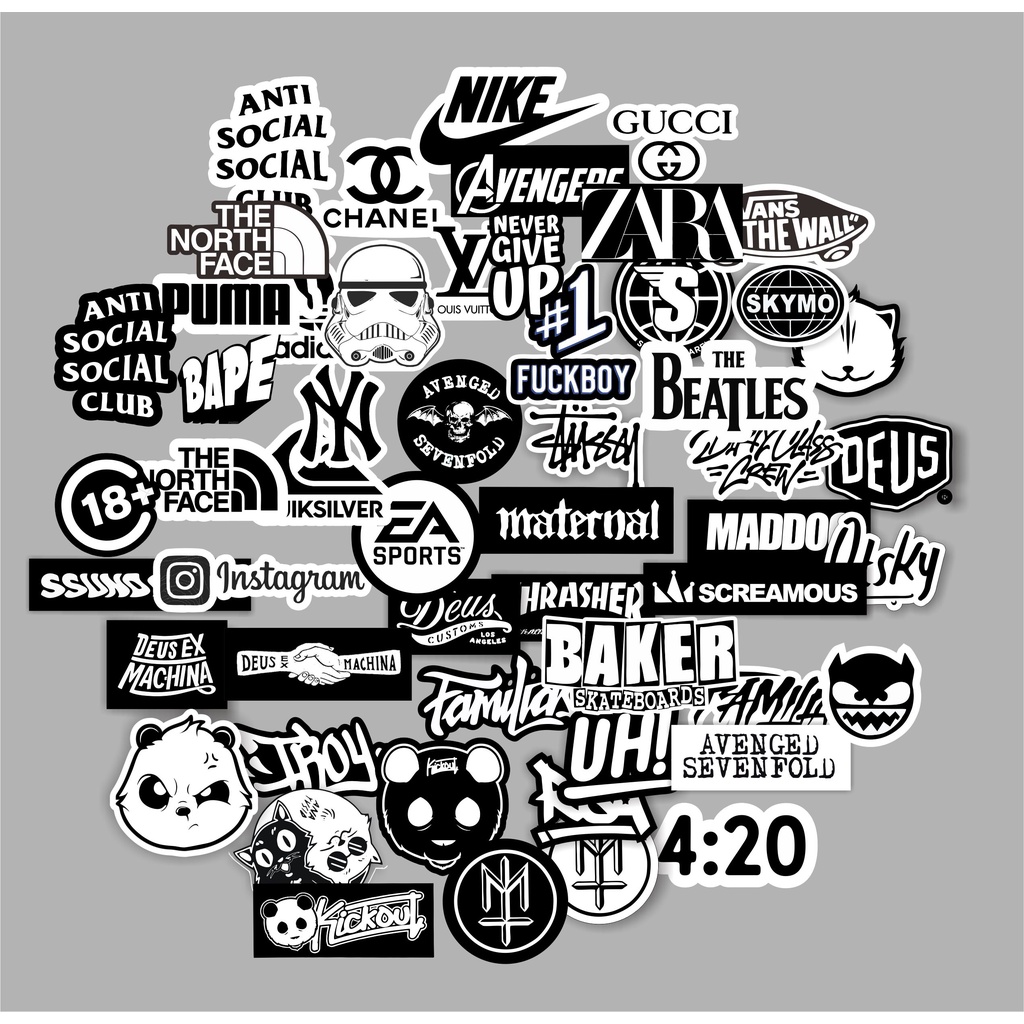 Stiker Sticker Brand Paket 30 pcs Distro Case Phone band Grafiti white Logo Basic Aesthetic Pop Art helm tumblr dinding laptop kekinian Local brand decal Striping motor mobil