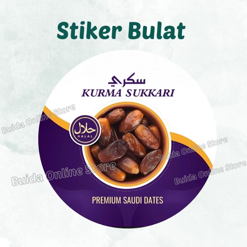 Stiker Sticker Kurma Sukari Premium Saudi Dates Sukkari Label Kemasan toples mika thinwall cup dus box kotak hampers parcel plastik oleh-oleh haji umroh bingkisan gift hadiah halal palm tree bisa custom tulisan tambah nama olshop