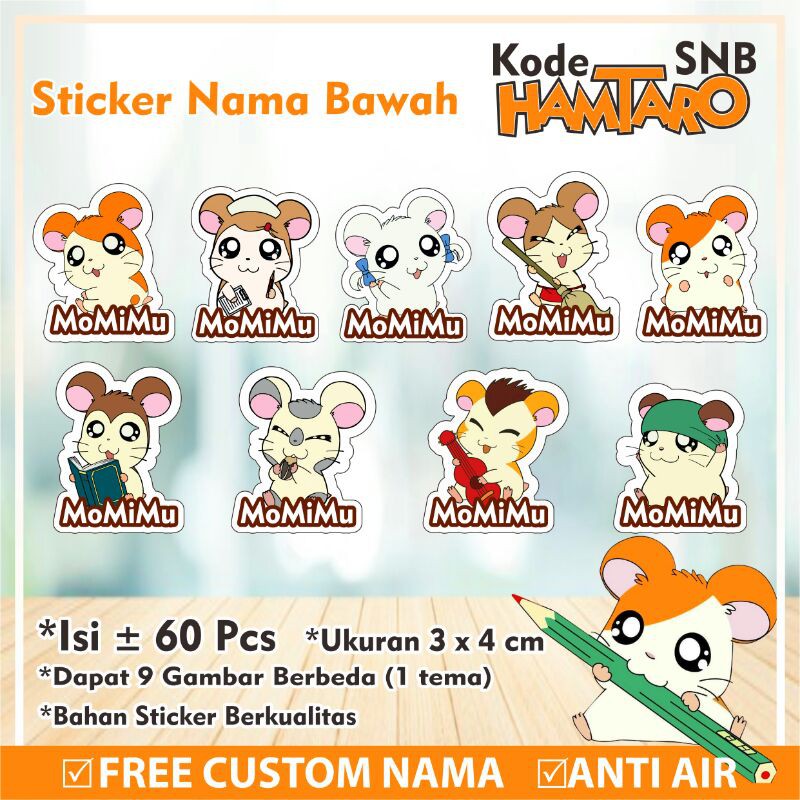 Stiker/Sticker/Label Nama Bawah Anak/Remaja/Dewasa Custom Karakter Hamtaro