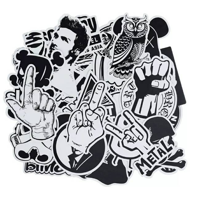 Stiker Sticker Lucu Hitam Putih Black And White Grafiti 100 Pcs.