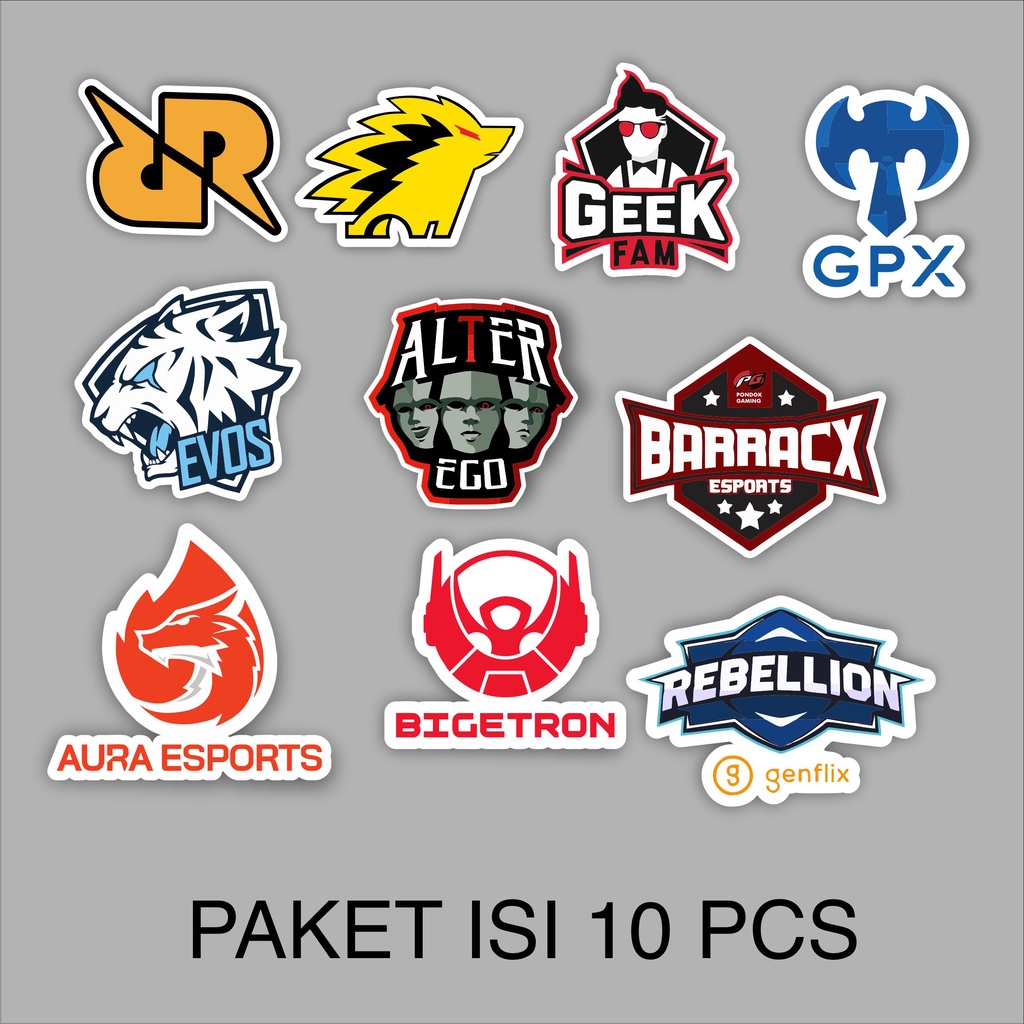 Stiker Sticker Paket 10 pcs Gaming esport Bigetron Pubg Evos Onic Freefire series Black White Case Phone Logo Brand Skate Surf Band Aesthetic Grosir Murah Pop Art Clothing Basic Daily Tumblr Laptop HP Casing Striping Tempel Label Merk Dinding