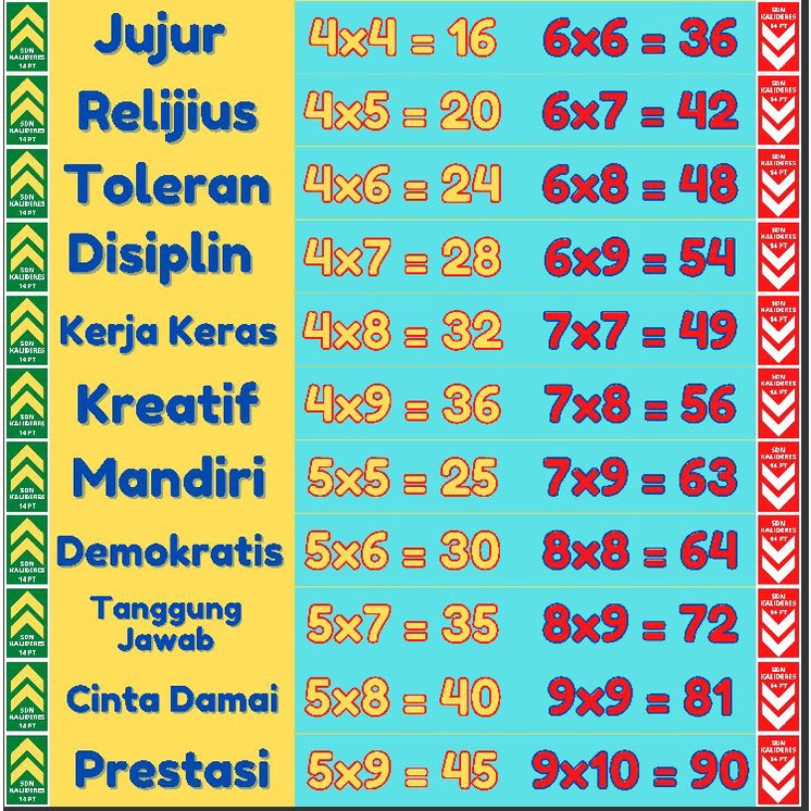 Stiker/Sticker Tangga edukasi literasi Sekolah Kreatif Seri Perkalian dan Karakter Ukuran 15x175 cm