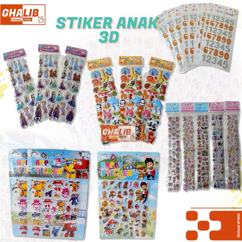 Stiker Sticker Tempelan Anak Motif Karakter 3D timbul Panjang LOL Frozen Glitter Anka Gliter Cewek XO Frozenn XQ Animal Hewan SuperWings Tom Jerry Paw Patrol
