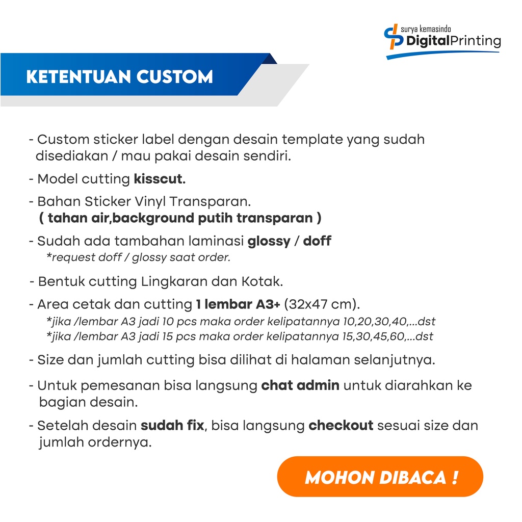 Stiker/Sticker Vinyl Transparan (CUSTOM) - Sticker Anti Air - Sticker Label Custom - Sticker Botol Minuman