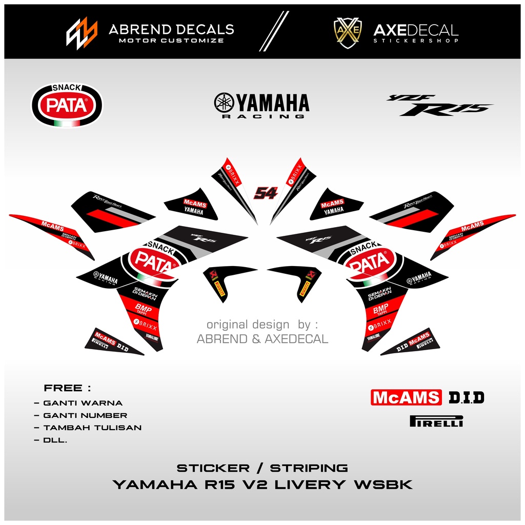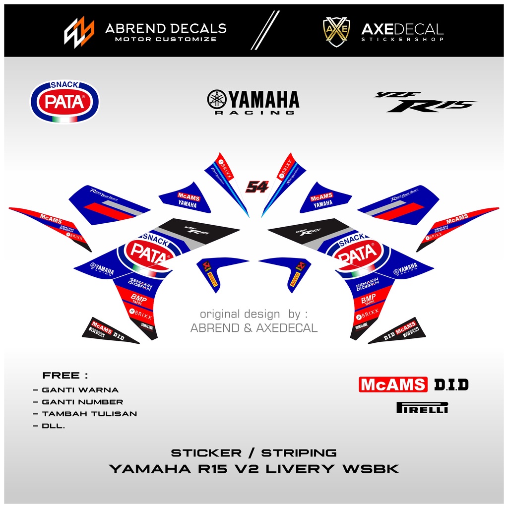 Stiker Striping R15 V2 Livery Team Yamaha WSBK / Sticker Motor Yamaha R15 V2 Design Custom / Stock Decal