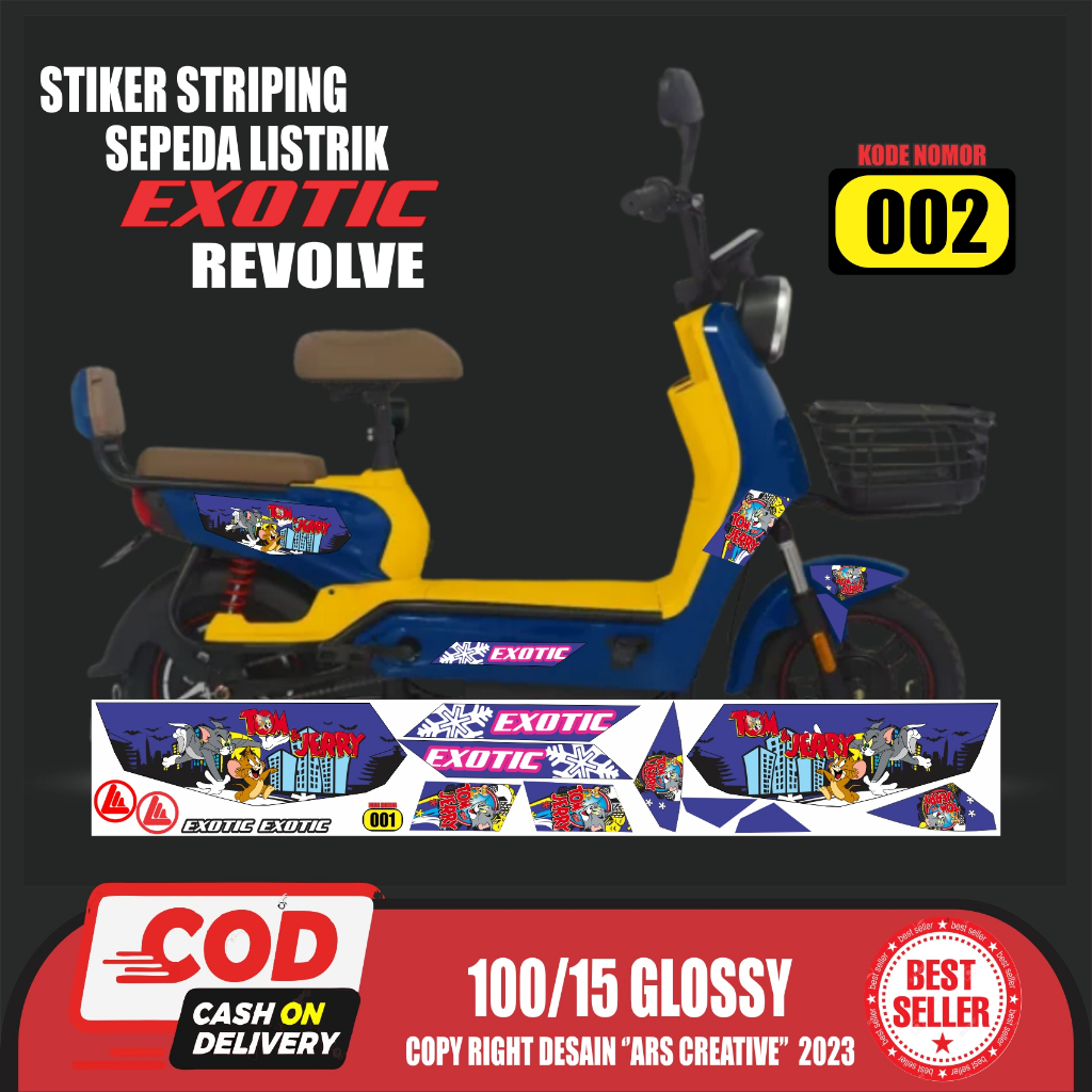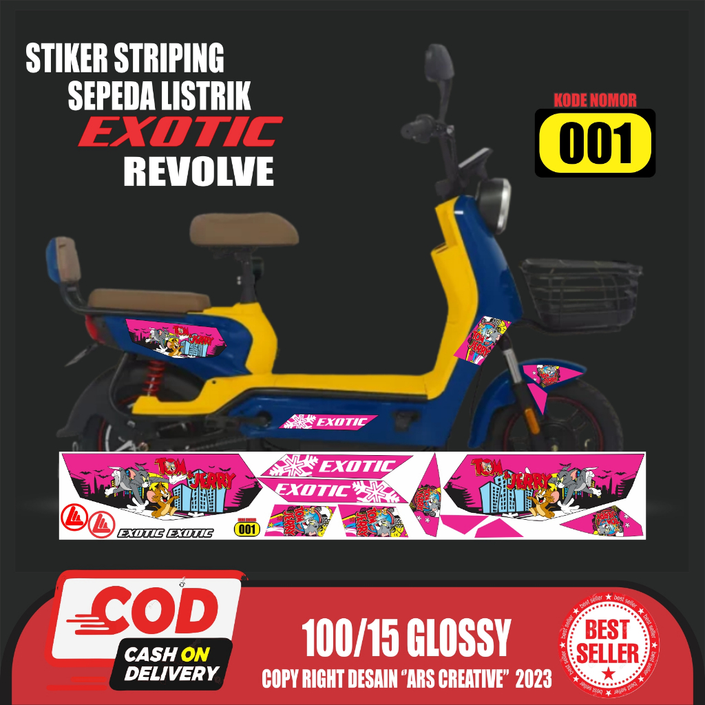 Stiker Striping Sepeda Listrik Exotic Revolve Variasi QLA002 Tom And Jerry Semua Ready