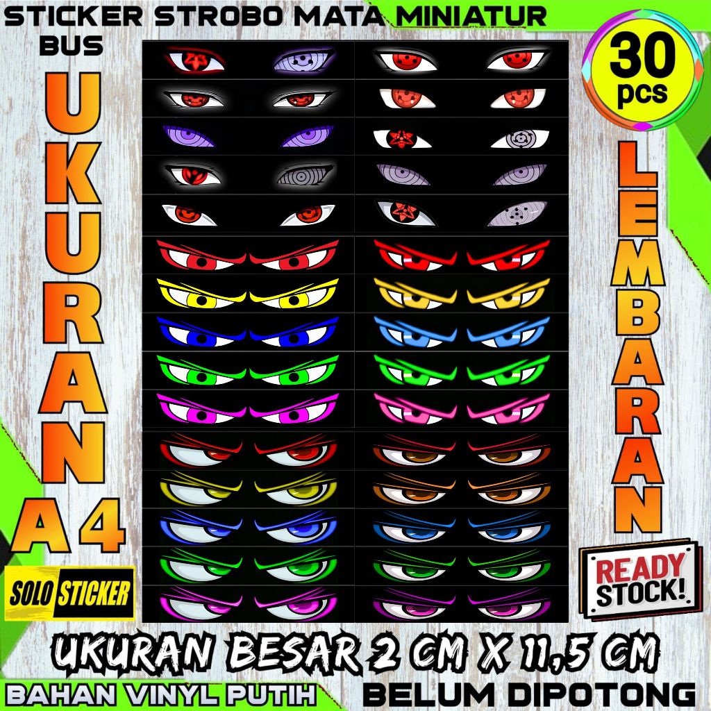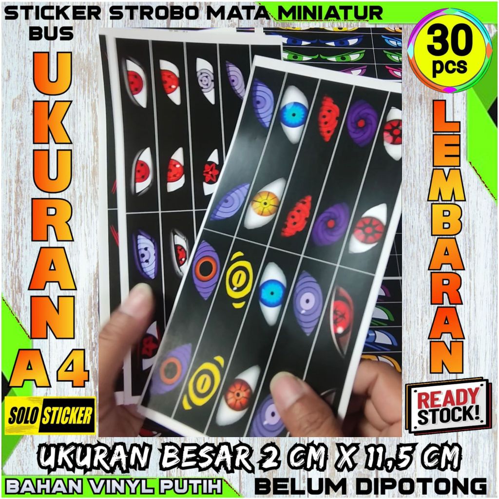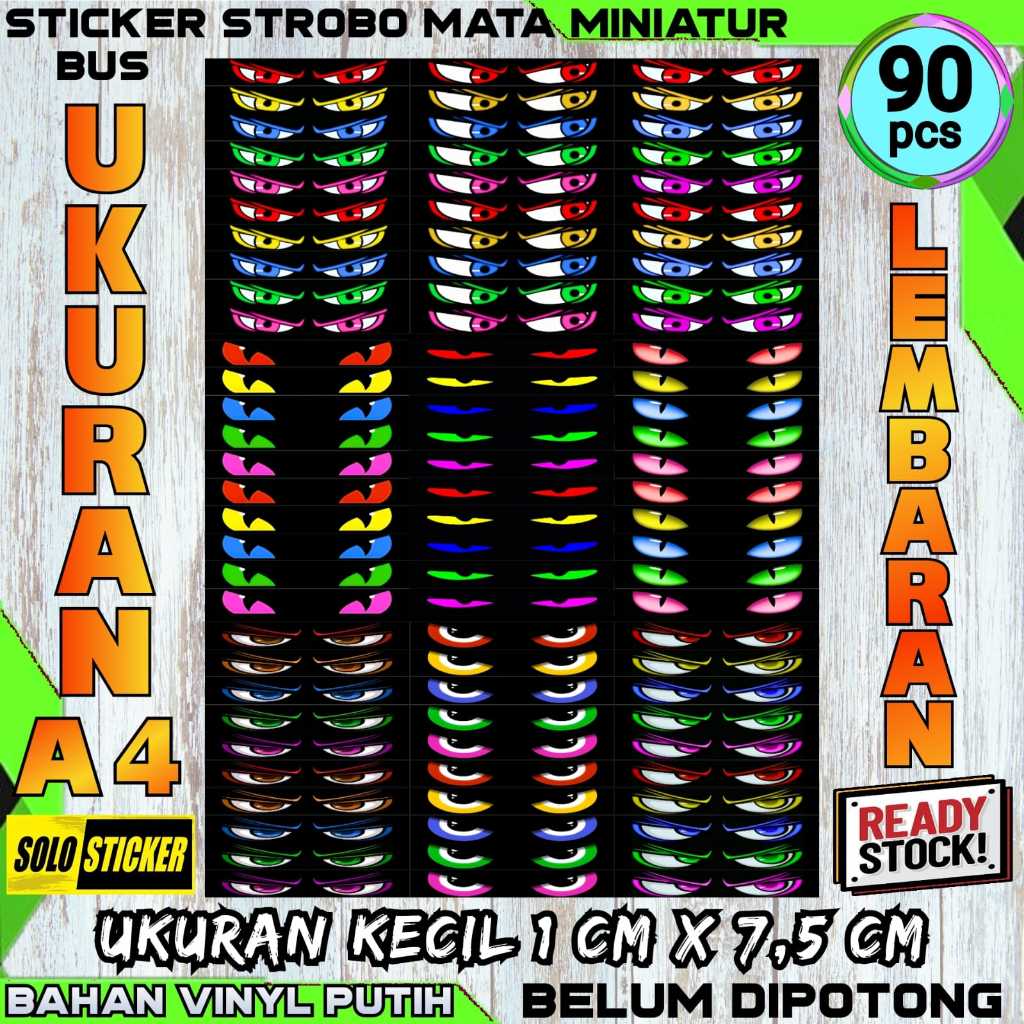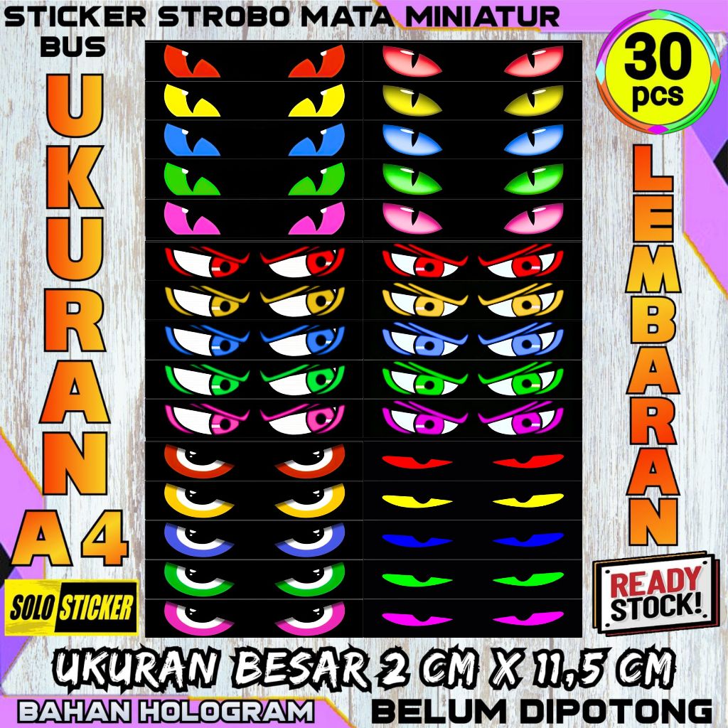 Stiker Strobo Mata Kedip Bus Lembaran Ukuran Besar Isi 30 pc 2 x 11,5 cm Bahan Hologram Anti Air