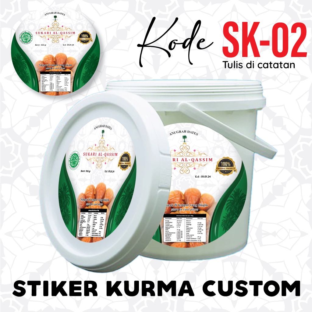 Stiker Toples Ember Pail Kurma Custom Gratis Desain / Stiker Kurma Sukari / Stiker Kurma Ajwa / Stiker Kurma Ruthob / Stiker Kurma Khalas / Stiker Kurma Saad / Stiker Kurma Barari