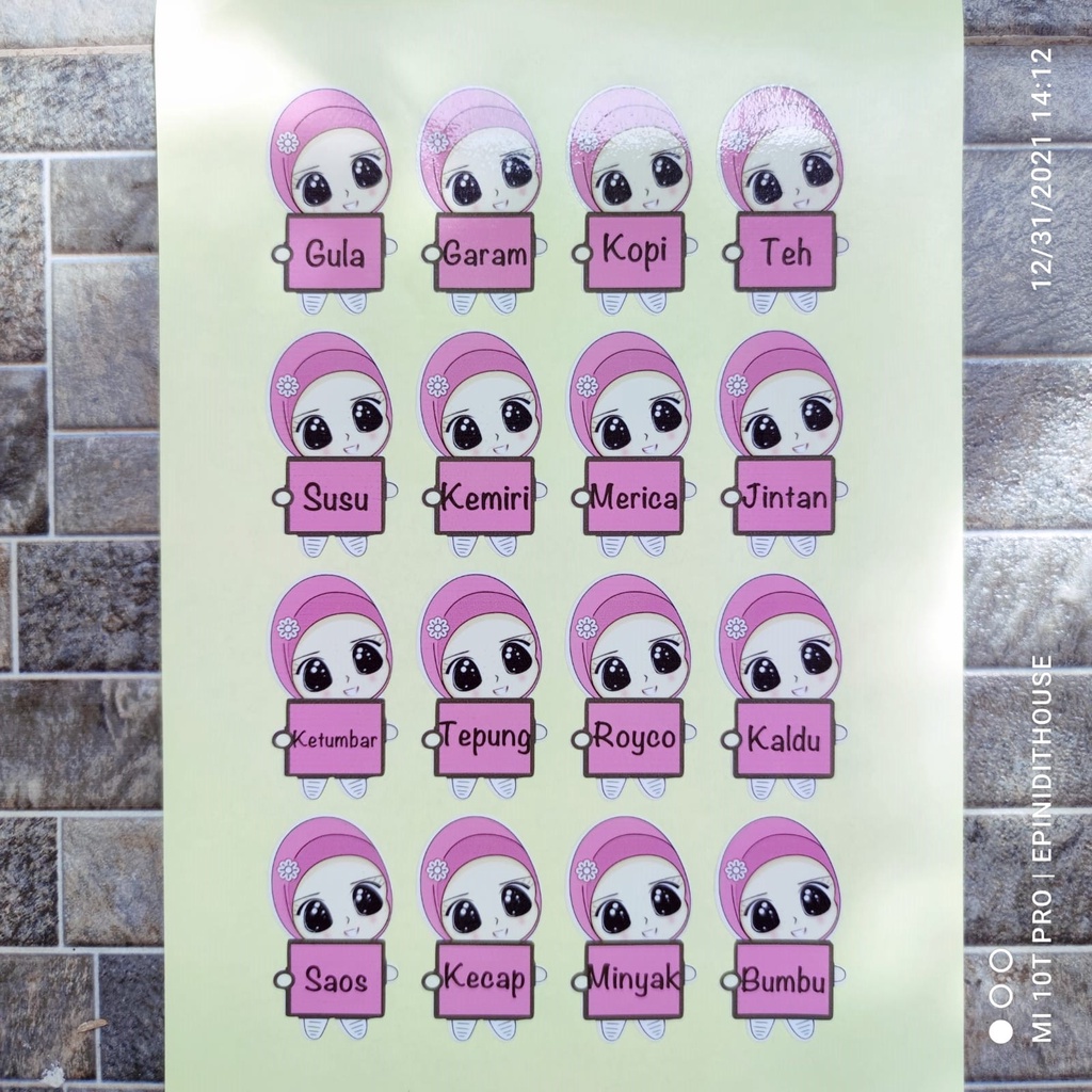 Stiker Toples Hijab Pink Cewek Label Nama Bumbu Dapur Tempel Anti Air